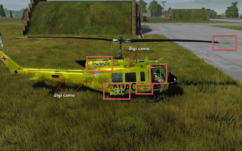 Well actually I just changed the main and tail textures. I compared the description.lua with the ones who work. there is no difference but the main and the tail textures. See the image to understand what happened: The body has plane yellow in original, not that digi camo trash. Any hint? I know the name of the seemingly missing textures. But in the description.lua they are correctly assigned. I am thanksfull for any advice. cheers Demon