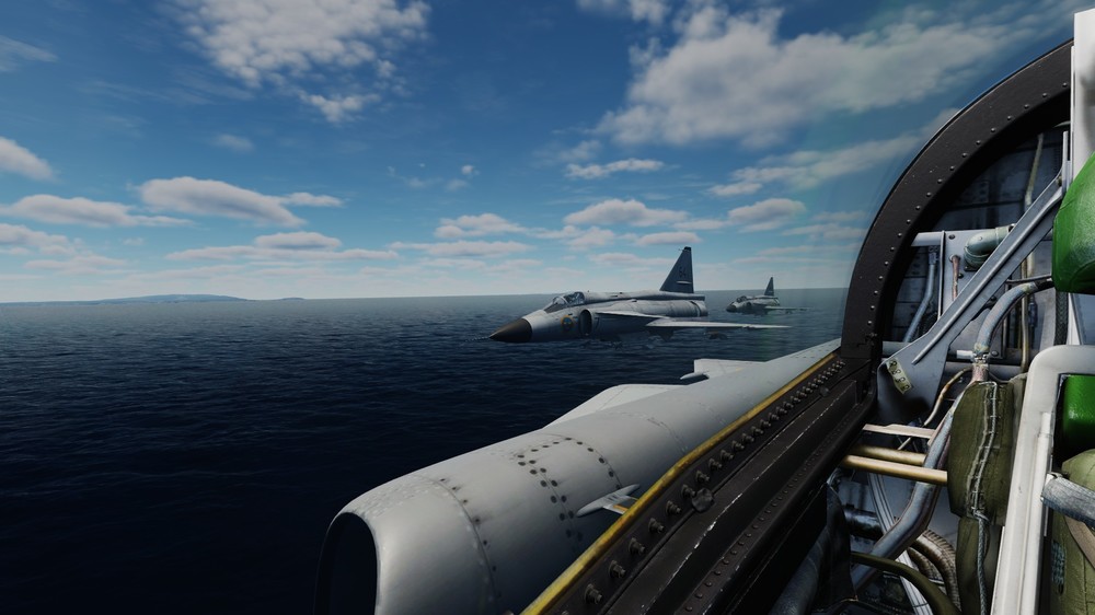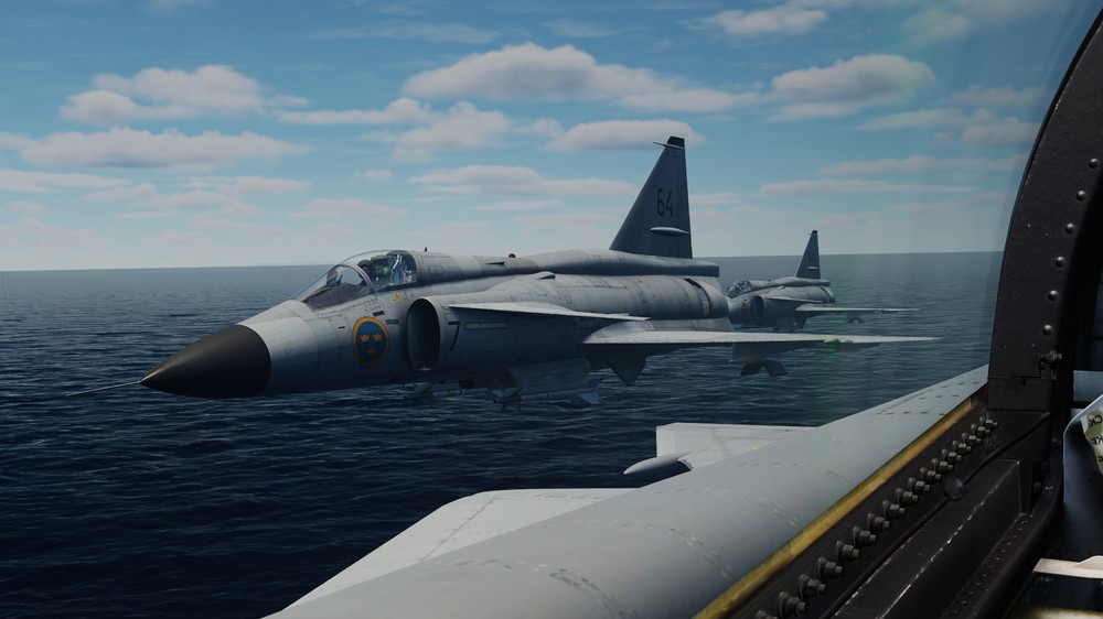 Originally we wanted to fly the Tomcat, so we could have been your two man bird, but they were all taken by singles, and you said the Viggens needed help, so we decided to do that. After the Viggen mission was completed, if I were flying solo I would have grabbed the Harrier, but I was flying with a wingman, and the only other aircraft they have is the Tomcat, but the Tomcats usefulness had run its course by then. The Kuznetsov wasn't an objective for the Viggen. We only went for it at first for the challenge, and continued because we found out we couldn't do anything else. Personally I suggest you unlock additional Viggen AG weaponry if they complete their primary objective, so we can help with real objectives. While it's fun to fly the 300+ nautical mile trip once or twice, it does get old, especially when we barely make a dent each time. For example, we made this trip 3 or 4 times involving 3-4 Viggens, and didn't sink any ships between 6 to 8 anti-ship missiles each trip. -