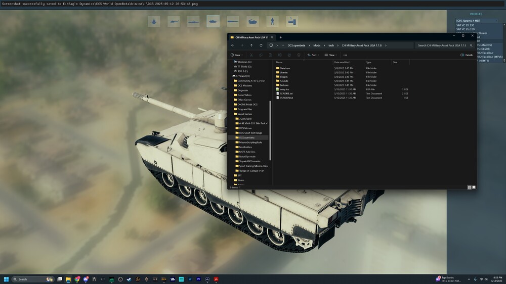 Yep, understand that. The issue is, DCS doesn't seem to be reading the updated entry.lua file for some reason. For example, I went into the encyclopedia and checked to see which CH vehicles were loaded. Its very few: null -