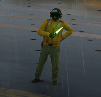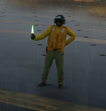 I've tried this several times, and I get stuck on the catapult.. After the deck crew signals to Retract the Launch Bar, they walk over to the side and some signal where his left hand is behind his back, and his left hand/light is moving across his chest to the right, and back again, over and over.. After retracting the Launch Bar, I expected him to tell me to throttle up... But I don't know what he wants me to do??