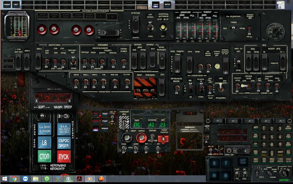 УРАА!!! Удалось вернуть циферки!!! Для тех, кто столкнётся с подобным: проблема в некорректном "reset monitors" для не совпадающих с оригинальным профилем разрешением мониторов. После "рисет мониторс" некоторые надписи, сигнальные огоньки и цифирь "уползают" в невидимую зону панелей. Чтобы это убрать, необходимо последовательно добраться до самой исходной панели (в редакторе профилей тупо даблкликать на панели до полного удовлетворения :) ) и уже на панели найти сами огонёчки, надписи или цифирь и изменить их размер. Откорректировать их положение относительно панели и наслаждаться результатом. Точно так же можно решить и русификацию панелек. Вот мой пример (см. приложение - да, не всё переведено, но сделаю в будущем). Только пока не придумал как русифицировать кнопочки. С фотошопом не дружу, всё делал средствами Хелиоса. Кому интересно - расскажу как сделать. Там просто. Можем скооперироваться и обменяться - кнопочки (от Вас) и панели (от меня), например. Просьба. Не всегда ясно где какой информатор системы САС чему соответствует, допустим в профиле - shkval fail, а в оригинале - И-251в (ну, здесь ещё можно догадаться). А поскольку у него в профиле всё перепутано как было удобно создателю, то приходится понимать методом тыка. Логика не всегда помогает... Вполне возможно, что кто-то знает точное соответствие английских сокращений русским. Помогите, плиз.