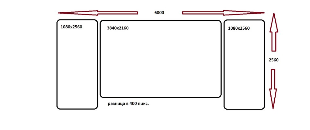 Господа-товарищи-коллеги! Требуется ваша квалифицированная помощь. Будет ли работать приведённая на наброске схема с видеокартой 4096MB DDR5 GTX980 GigaByte (GV-N980WF3OC-4GD) (процессор, если что: i5 7600К)? В спецификации видюхи указано, что максимальное разрешение 4096x2160. Зато шина 256 бит. Но - вопрос следующий - а если разогнать? Или глухо, не поможет? И что вообще произойдёт, если превысить этот самый максимум разрешения? Перестанет работать один из мониторов, или всё станет происходить очччченьь мммеееедддлллееееннно?