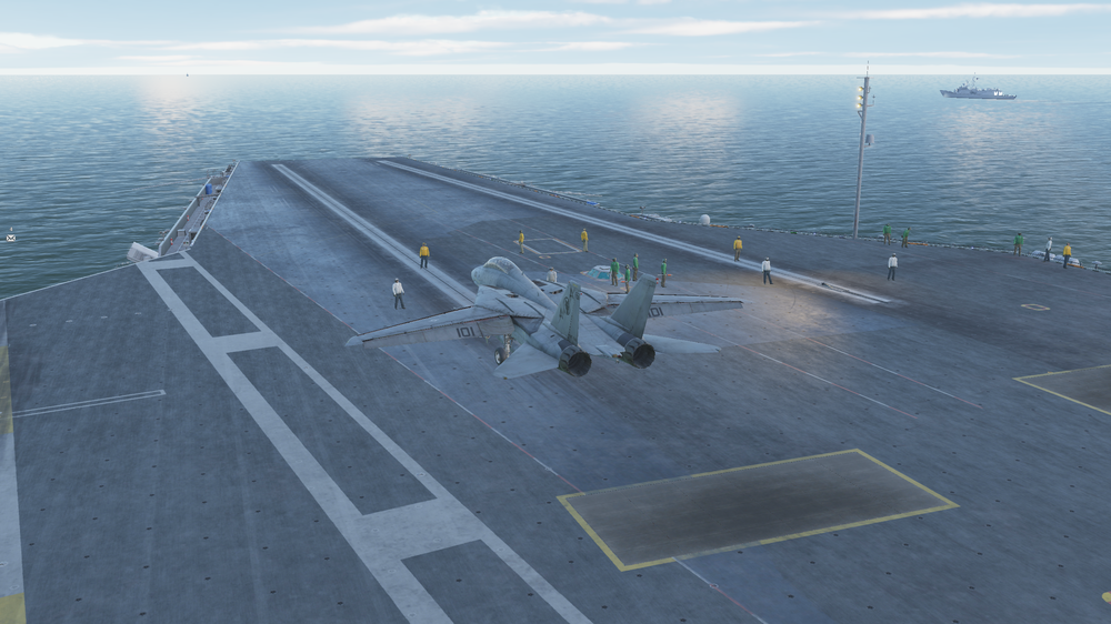 Hello. I'm playing the SC version in MP and we're stuck on mission 2, it simply won't launch us from the cat. The jet blast deflector is down and the ground crew is simply standing around as if we're not there. Ground crew does not respond to commands (request launch/salute), and since we are stuck on the catapult we can not try a different cat. The other flight does however take off normally and the jet blast deflector is up for our wingman. We've tried restarting the mission and the same thing occurred. Screenshot attached. Edit: Same on mission 3. Also noticed that in mission 3 the non-SC carrier's deck is lots more populated than the SC carrier's. The non-SC carrier could launch us FWIW. UPDATE: The host MUST take the pilot slot for the SC ground crew to launch the aircraft. If the host is in the RIO slot it does not work.