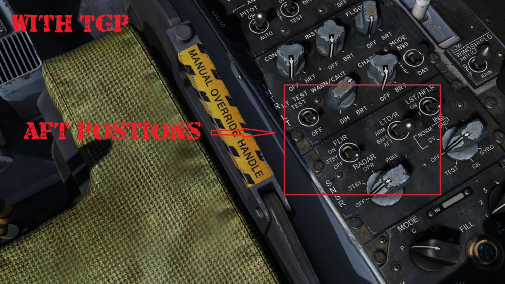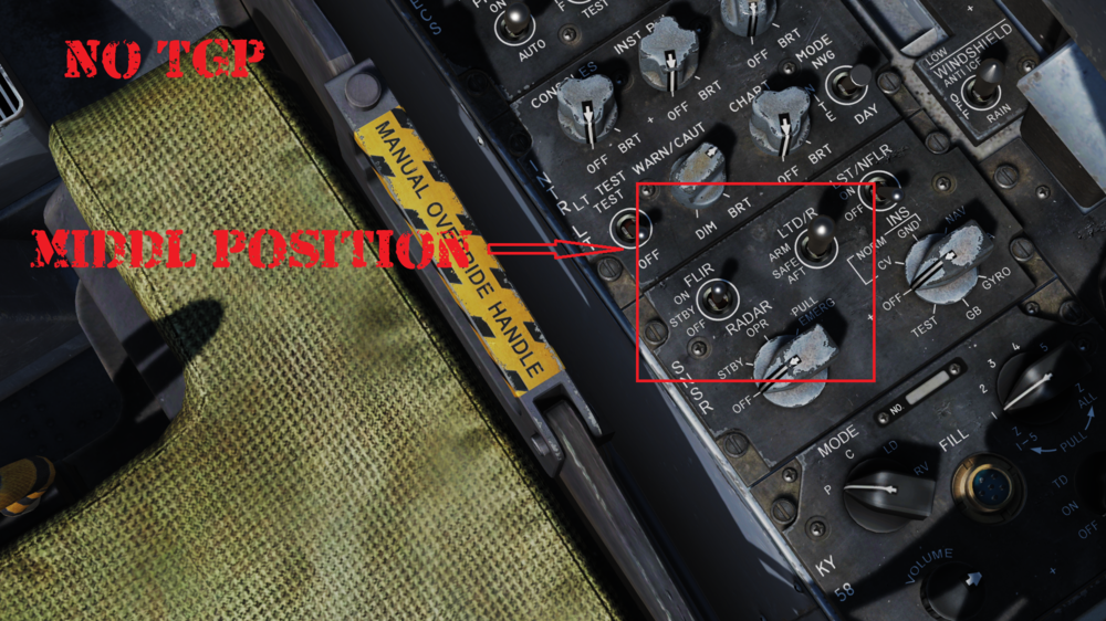 Seems that when the TGP is not loaded the switch defaults to the middle position, when you load the TGP the default becomes the AFT position, only noticed this behavior now that I went back and had a look at it. Bear in mind this is in the beginning of a cold and dark start. So the triggers on the switches work as they should, just their position changes depending on if the TGP is loaded or not. See attached pics. Just upgraded my hardware and reinstalled DCS, so it should be as fresh as a daisy, no mods. dcs.zip -