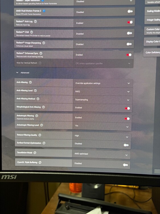 Sharpe- I have both turned on in my AMD toolbox, it actually gives me better results, DLSS results on the landscape with crisp clear jets is the goal. It would be nice if they would give AMD users a little love. I built this rig Just before the big update that cemented Nvidia as the preferred hardware with the texture compression etc