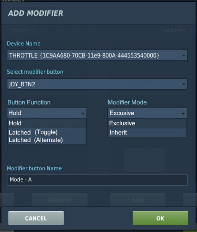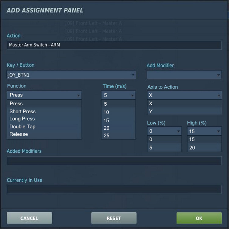 First off, I have to say DCS offers some of the most flexible and deep controller mapping functionality of any sim or game I know of and I really appreciate how flexible it can be (even more so when you get into a bit of LUA editing)... However, it has potential, and the possibilities to expand on that to really high degree! Some of my inspiration here is taken from what's possible with various external mapping utilities such as T.A.R.G.E.T, Joystick Gremlin, etc. For example, added assignable actions such as: - Short Press - Long Press - double Tap - Axis to Button assign-ability And more consolidated and extended functionality to the 'modifiers' system such as mode exclusivity or inheritance from other modes/modifiers (the current Modifiers system with its 'modifiers' & 'switches' panels has some of this functionality...but it's mutually exclusive and not as flexible). The benefit of having these options available native to the sim would make them far more powerful than using external applications, eg: Have the schemes/profiles on a per-module level as opposed to global, no need for 3rd party software. I have no idea how difficult this kind of work would be to code in (some of the functionality is there, just not exposed to the GUI), but I think the flexibility and added control would be very highly valued. Especially when you consider that in a sim this deep, with so many assignable actions, HOTAS and controller real-estate premium is already about as high as it can get. For a visual demo, I've thrown together a few examples of how, if implemented, I believe these additions could be integrated and appear using the current GUI flow we have now: Action Assignment Panel: Modifier/Mode Panel: Cheers, Brick