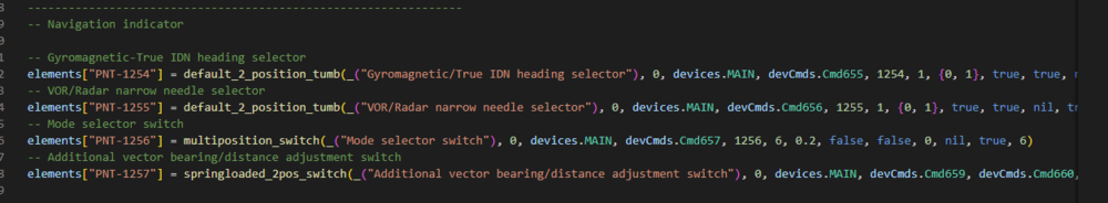you can use the model viewer to find control ID's. It's a bit tedious because it lists all the thousands of IDs in each plane. You can also look through the Luas that contain the controls for the different versions. The EE specific controls are in this file Program Files\DCS World OpenBeta\Mods\aircraft\Mirage-F1\Cockpit\Mirage-F1\Mirage-F1EE\clickabledata.lua The button ID is the number 3 followed by the numbers in the Cmd statement. For the Mode Selector it would be 3681. The Device ID is usually 1. The DCS ID is the number after the Cmdxxx, statement. For the Mode Selector that would be 666. To get the right readout from the HSI mode use DCS ID 1256. -