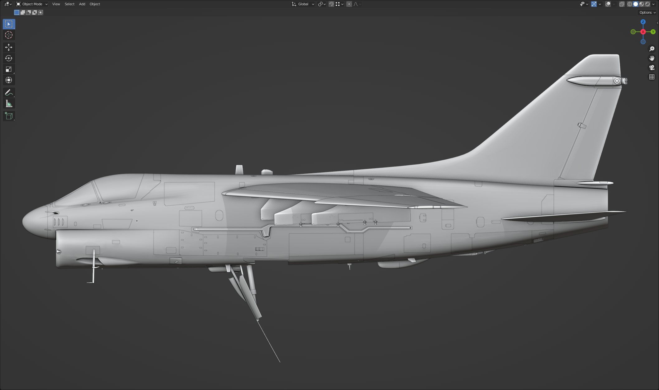 G'day guys! We know that you've been itching to find out more, so this report will be purely focused on the development state of the A-7E Corsair II for DCS World. The SLUF has an all new, much improved 3D model and today we're happy to be sharing the first pictures of the new model in-sim! First, I must apologize for the lengthy gap between development updates. We understand that many of you are keen for more regular update reports, and I will strive to do my best going forward to try and keep the development news flowing through more regularly. Without further ado, let's dive into what we've been up to in 2023! ARTWORK 2023 has been a wild ride for our beloved Corsair; with some difficult decisions being made throughout the year. In our previous report, we unveiled our overhauled and remade 3D model in all of its beauty. The model was exquisitely detailed, and we were very proud of it (and still are) - especially considering the model was built from only photos and blueprints. In 2023, we recruited a new artist, Oleg, who is a veteran of the industry & aircraft modelling, having worked previously with some of the very best teams in Flight Simulation. Not only an incredible 3D artist, Oleg has extensive experience with photogrammetry; the fascinating process of extracting a 3D model from a real-world object via a detailed photography process. This presented us with a unique opportunity to do something we've never done before - scan an entire aircraft as the basis of our model. After being presented with this opportunity, we made the very difficult decision to remake the 3D model AGAIN. Now I know what you're thinking, and don't worry - this decision hasn't had any effect on our release projections; there is still plenty of more programming work to be done in tandem. Of course, this decision was very painful for us, having to set aside thousands of hours of work is not a decision to be made lightly. Ultimately though, we believe that this was the best decision going forward for the team, for the module and for the consumer. Our previous model was excellent, however any model built from blueprints & photos is prone to inaccuracies, as minor as they may be. This is just the nature of dealing with wild blueprint inaccuracies, incomplete photo reference and managing strange photo perspectives and alignment. Photogrammetry eliminates these errors and inaccuracies, providing a true-to-life 3D reference of the model and textures. The external model has progressed at an incredible pace thanks to the photogrammetry, and soon work will begin on the cockpit remodel. Now that the new model has been in development for some time, we are absolutely confident that we made the right decision, and we think that these screenshots might just convince you too Note that the textures here are using the scan reprojection from an A-7P, and don't necessarily represent the final textures or level of wear & tear. PORTUGAL TRIP Earlier this year, Oleg & all of his gear packed up and made the journey to the Museu do Ar (Air Museum) in Portugal. The museum is home to 2 beautiful A-7P aircraft - one in Ovar, and one in Alverca (plus an additional cockpit display in Sintra). We were lucky enough to be granted full access to both aircraft; not only the exterior and cockpits, but also to internals such as the radar & avionics bays, landing gear compartments and intake! With perfect weather shining down on our scanning days, we were able to capture near perfect scans of both airframes - giving us not only 1, but 2 complete reference models. This took several days of laborious photography, crawling inside tiny compartments, setting up lighting rigs and capturing tens of thousands of photos from every angle imaginable. As you can see, the end result has been well worth the effort. We are immensely proud of the new artwork and the progress it's been making; Oleg is doing fantastic work and we truly believe it will be up there with some of the best in DCS World. Of course, we didn't stop there - you don't get an opportunity like this every day! We also used the opportunity to capture video footage inside the cockpit, providing detailed reference of switch, dial and lever motions to provide accurate reference for animation. The final step, using a professional microphone rig, was to capture all of the unique cockpit sounds that we possibly could. Although it would be very easy to use generic switch & lever sounds, we think using genuine sounds from the real cockpit just adds that extra level of immersion & authenticity. FLIGHT MODEL Moving into Phase 4 In the last few months, work has been mainly focused on further developing and refining the flight model, with the aim of getting it ready for testing and into phase 4 of development. It's been quite a lengthy process, requiring a redevelopment of the equations driving the flight model, in order to be able to better integrate the CFD data we have been capturing. We also came across a new source of wind-tunnel data this year, providing more direct data to be used in our tables as well as providing very useful validation data for our CFD model. Without getting too technical, we have significantly expanded upon our stability & control derivative modelling, replacing previously linear derivatives with complete non-linear data tables, often with 3 or 4 dependencies and inputs. Again, this goes above & beyond the derivatives provided from wind-tunnel testing and provides a more in-depth and accurate simulation of aircraft dynamics, particularly at & beyond the edge of performance envelope. This year also saw the expansion and development of the TF-41 engine simulation, with much the same process being applied here. Various data reports & engine simulation software were used to create a comprehensive picture of engine performance, with work ongoing to further develop simulations of various engine subsystems & quirks. The TF-41 is a relatively slow engine to respond, adding an even great