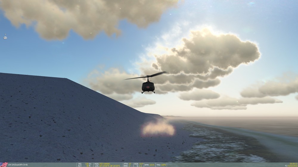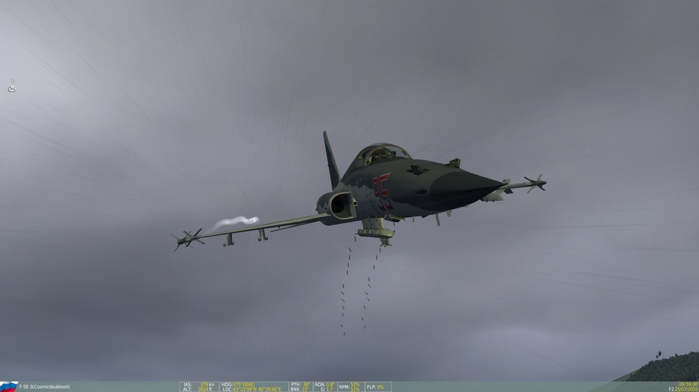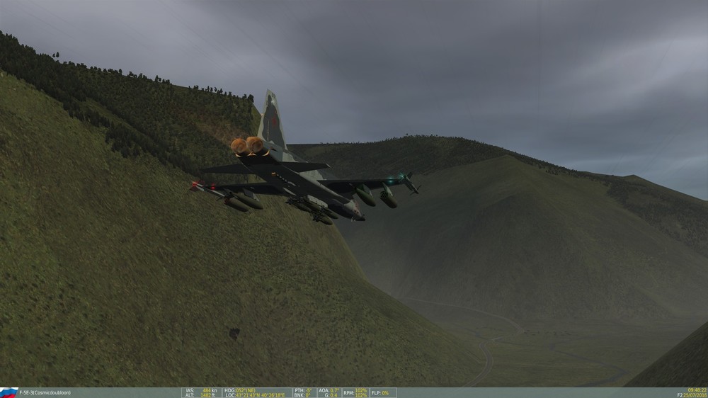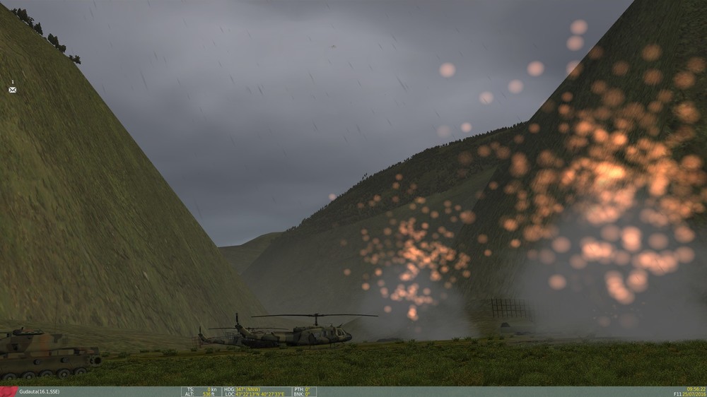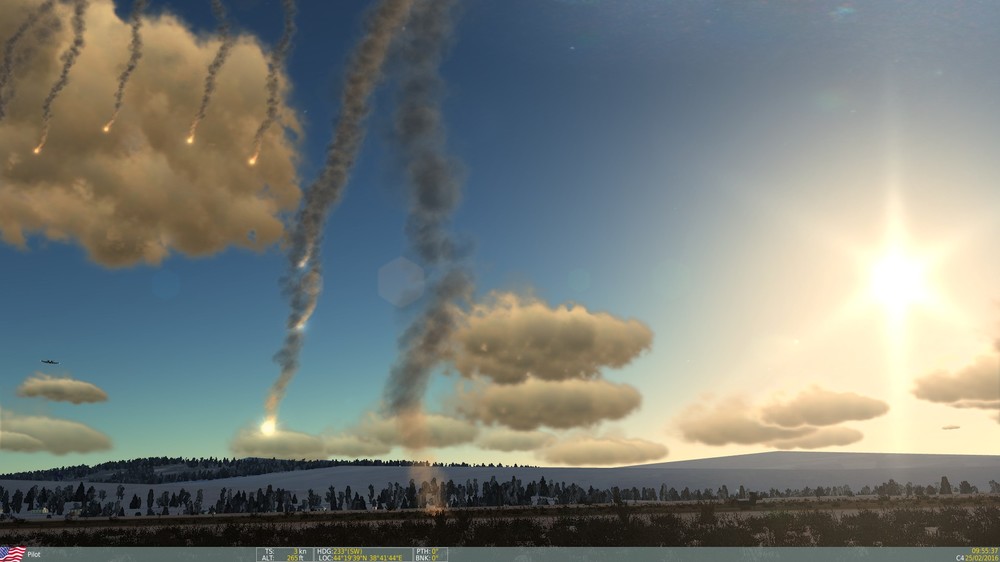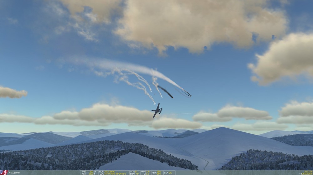 17. -Short story, Open Conflict Tuapse- The radio crackeld to life, " we have a friendly F5 that just landed near a friendly sam base that is currently in contact with enemy aircraft and under enemy artillery fire!' The only CAS aircraft we have on station is a single A10C! Scramble, scramble, scramble! The sound of the Lycoming turbine engine began to whine as it struggled to start in the subzero temperature but eventually the thump of the slick Huey single rotor blade began to echo across the frozen valley. ETA 18 minutes. We have an A10 on station providing CAS. Moments later, Voodoo1 voodo1 radar contact 15 miles hes doing 500 kts. The A10 immediately switched to a2a mode and began utilizing the awacs instructions to target. Danger close 3 miles...MERGE! A swooping hard left turn the a10 jumped the enemy fighter and the aim9m growl quickly sheered to an ear piercing zing. FOX2! Splash! Over the immense enemy ground fire the the stricken F5 pilot began to hear the legendary sound of rotors, "rescue 1 has eyes on green smoke." The helicopter landed in the soft snow and loaded the pilots. "Archangel this is rescue 1, troops on board and green, coming out." The helicopter spooled to high idle flinging snow and ice in all directions as it lifted off and disappeared into the snow capped mountain tops. Mission Success.