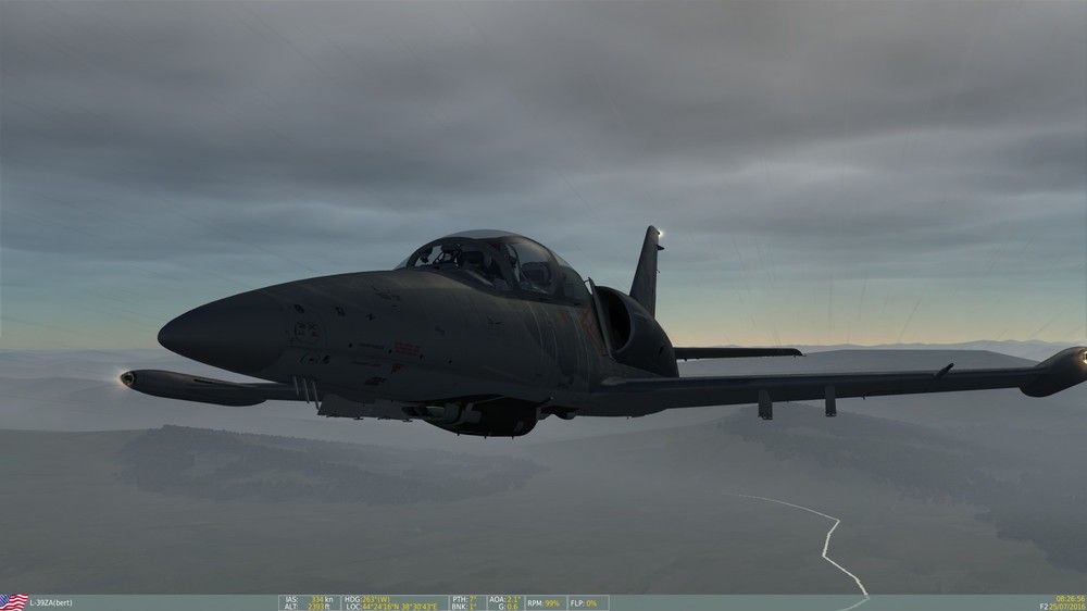 14. OMG the new weather is the BEST i have ever seen in DCS!!!:thumbup::thumbup: I had to get back on tonight just to see the new update. A quick L39 run with Bert, here you can see us laying waste to the incursion. This weather will significantly help us little light attack/trainer aircraft guys evade the mighty modern fighters! (also for the record i shot down F15 in L39 just so everyone knows. My first a2a kill will it lol) The level of fog with high overcast is stunning. Excellent for HELO PARTYS! And the density of the fog is perfect, just enough to obscure some stuff but not too thick to where the air quake players would complain about not being able to find airports :lol: Navigation skills will actually be useful now! EXCELLENT update Mirk!:thumbup::pilotfly: