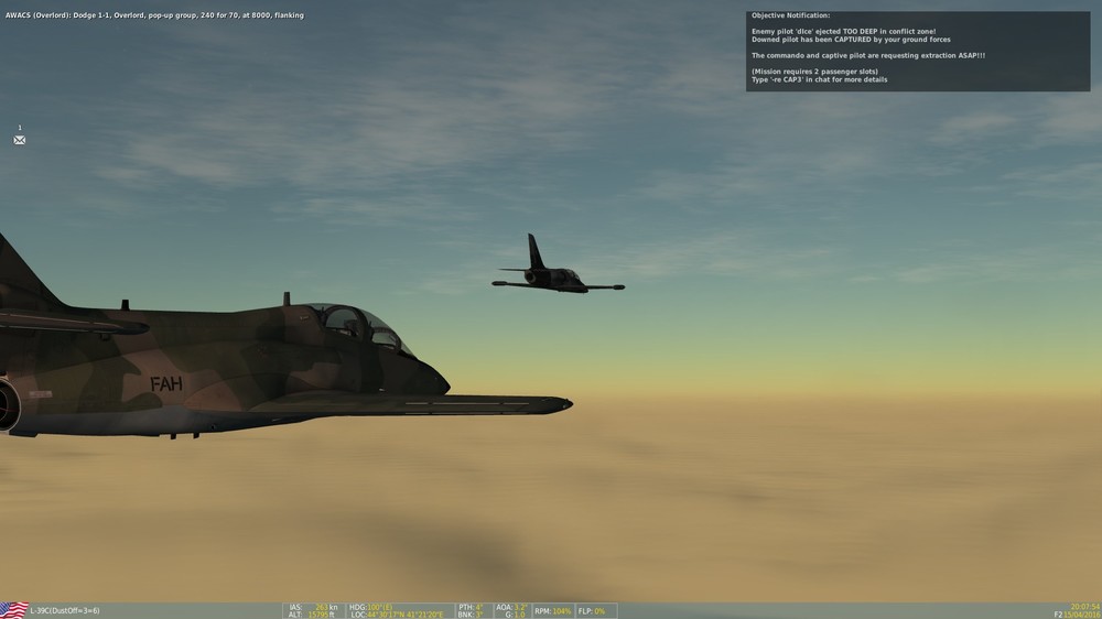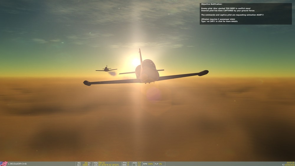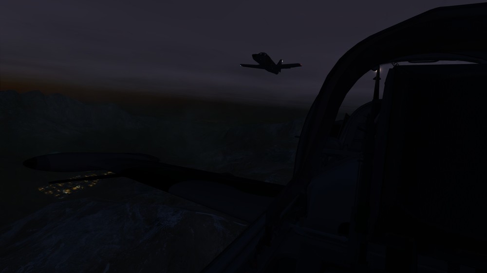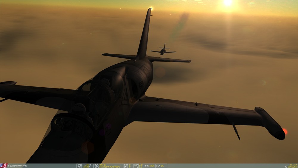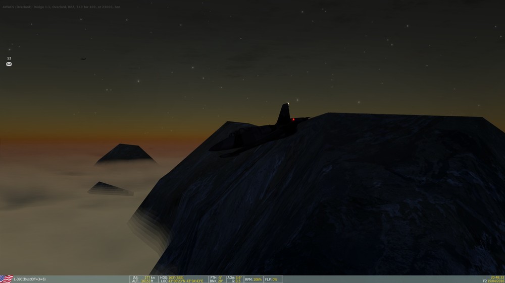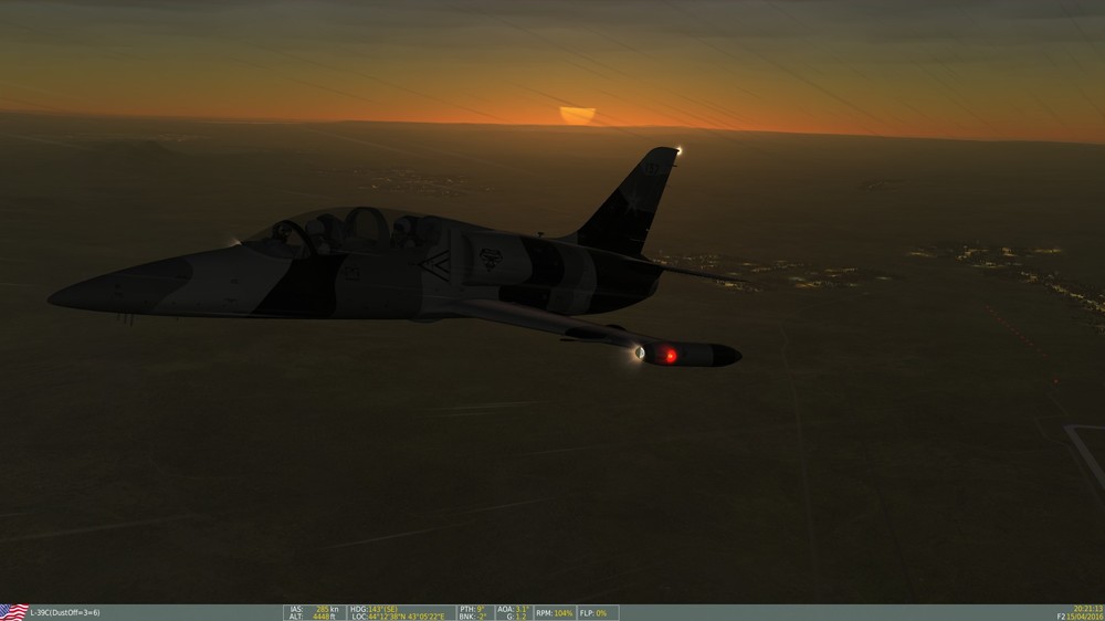 Well today was our first attempt at the world record cross country, I would say it was semi-successful as we ran out of time to make it all the way to our last stop, but we were able to successfully land at kutasi. Journey started out a little rocky. C101 tried to land at krasnodar with no gear and the Hawk forgot to flare. So right off the bat we were delayed about 45 minmutes which is what prohibited us to finish all the way to batumi. However once we took off from Krasnodar on the way to Maykop things started to smooth out. The 3 ship was separated due to pilot error and the stranded Hawk ended up getting R27ERd to the face after becoming hypoxic and blacking out at 17,000'. Now we are down to a flight of 2, C101 and L39. Our next segment had us departing Maykop eastbound to Nalchik via Mineralyne VOR. However over the course of 140NM several surprises came upon us. Moderate ice was encountered and forced our 2 ship to climb rapidly at full military power. In the frantic climb the C101 forgot to switch fuel tanks and lost engine power. An airborne restart was attempted then failed due to fuel pump positioning. (pilot error) However the second re-light attempt was successful thanks to flight lead guiding the scared trainee through the procedures. Once the Engine was recovered the pitot static system iced over on the C101 and forced him into a dive to get out of the icing and find warmer temperatures. He eventually found his anti-ice switch and turned it on....:doh: Rejoined with about 50NM to way point Nalchik beautiful screen shots were taken during the sunset flight and approach. We tuned in the ILS and did practice ILS landing. The next segment of flight had us crossing very rough high altitude terrain and dark was fast approaching. Hot refueling procedures at Nalchick and the 2 ship was off to brave the mountains. ***meanwhile mr hawk pilot has been on an intercept heading full military power to intercept our position*** We began flying up a small mountain valley below the cloud layer. Rapidly realizing the mountains are becoming obscured by low level clouds we begin a max power climb. Completely in instrument meteorological conditions and in high terrain at night...bad situation. Luckly the C101 broke through the top of the layer and frantically told flight lead to climb as fast as possible. Struggling to maintain airspeed as is I pitched up to brink of stall. Eclipsing the cloud layer I noticed we were heading straight for the tallest peak!:surrender: Clearing the side of the mountain by less than 50' crisis was averted and we re joined tight formation to capture a few more shots of the terrain above the clouds. *at this point the hawk is only 5 miles to intercept us! he pulls up to clear terrain, blacked out, stalled and ended up a smoking hole in the mountains north of Kutasi..RIP Cravgar:worthy: Server running short on time we max power fly to Kutasi and land successfully, however still about 60NM short of our original intended destination of Batumi...maybe next time.:pilotfly: For just a flight with no weapons it was still action packed and we were all exhausted after nearly 2+ hours of constant flight, refueling, instrument navigation, and system failures. Maybe next time we will leave a bit earlier:thumbup: