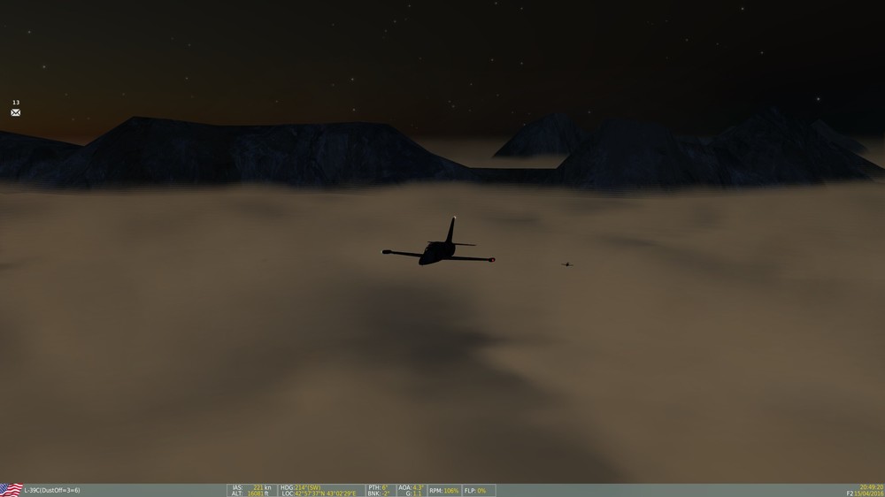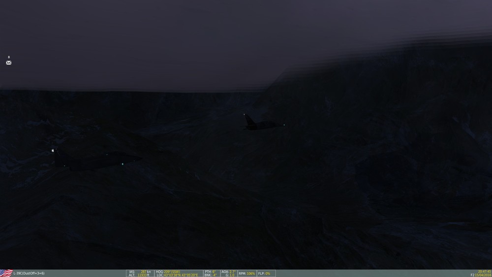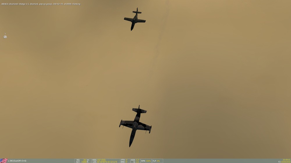 Pitot heat? "De icing on " refers to engine bleeds which is controlled by the circuit breaker switch on lower right switch panel (which clearly you had turned on) Pitot heat are two square buttons on the left panel that illuminate green when activated and they must be activated manually, there is no associated EICAS light) if they were also on then yes I would conclude it was just do to the previous bug. Too bad I won't be on for the rest of the week but I am always down for L39 wingmen to attack ground targets. Shes a module that I just can't ignore for some reason, something that keeps drawing me back in! Also cross country next weekend most likely for all trainer/light attack aircraft!