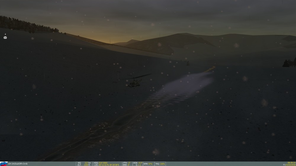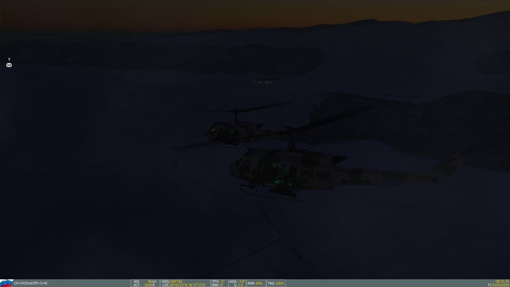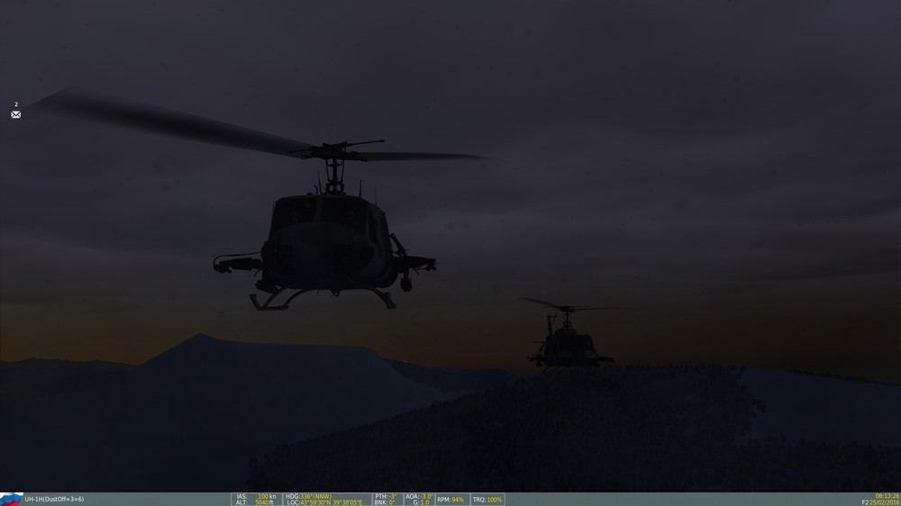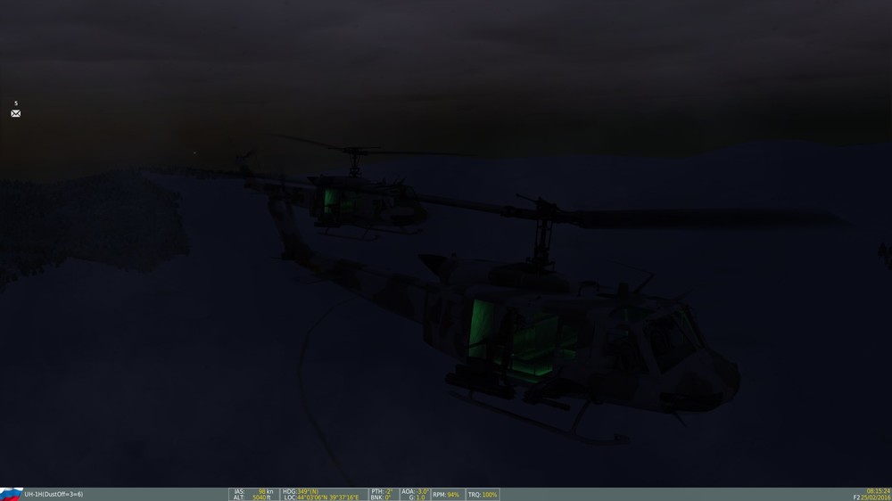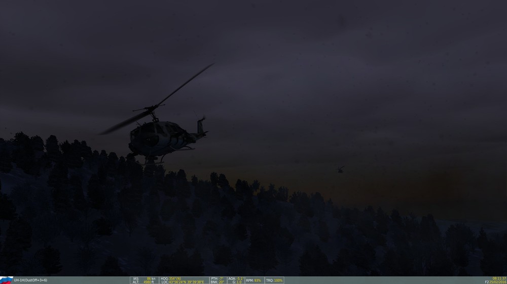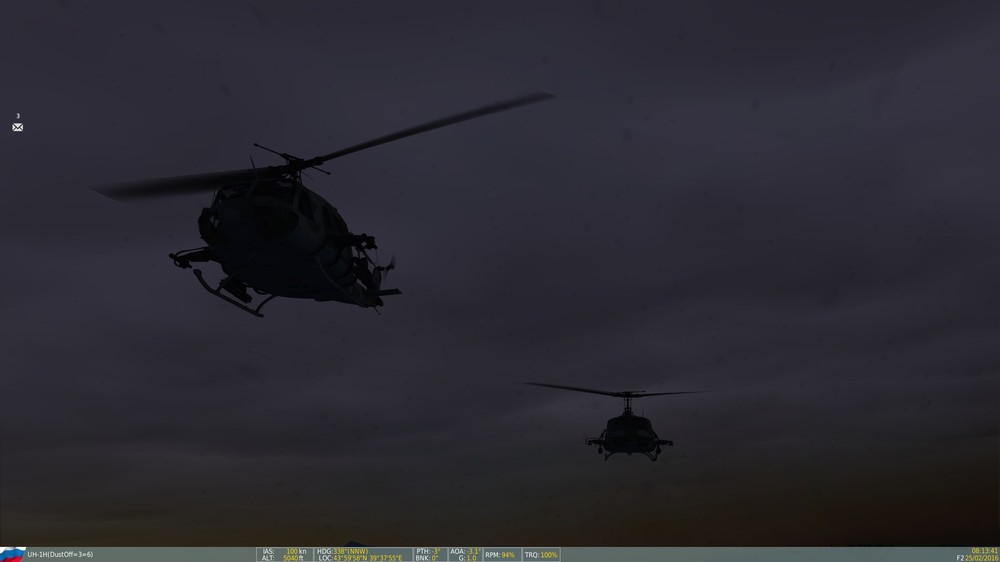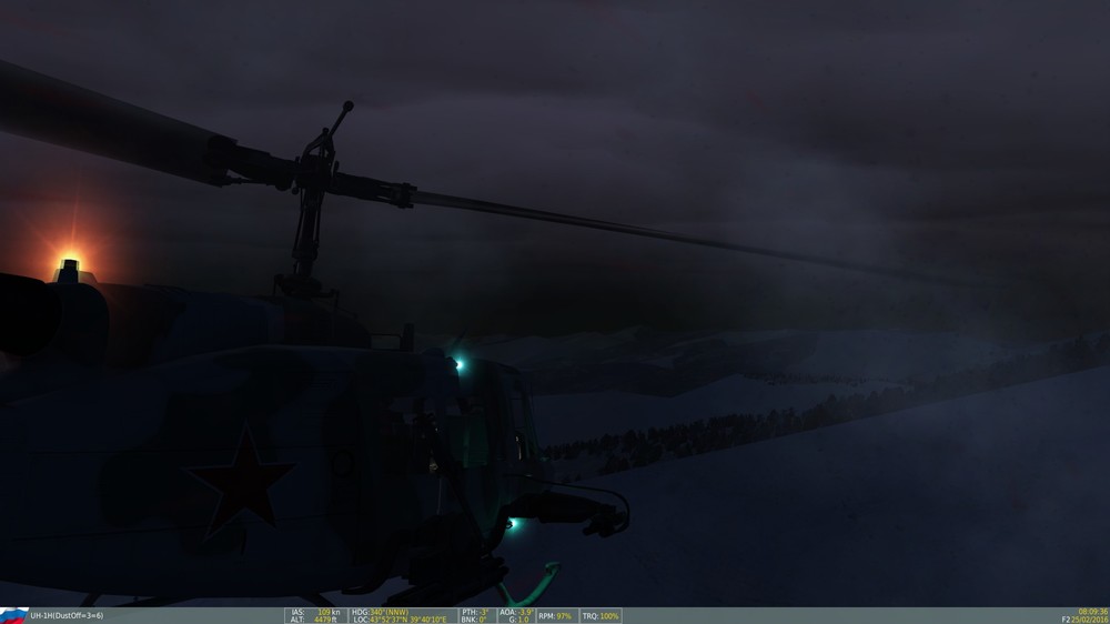 It was a bitter cold January morning while the Huey crews loaded their choppers. Snow fall and sub zero temperatures lead to low level air frame icing that had to be remedied. Whiteout terrain rendered night vision goggles near useless as the 2 ship flew in tight formation to the enemy outpost. Stacked in a line formation nearly 5 feet off the ground and speeds of 120kts they performed a fast attack with guns and rockets and delivered some communism to the capitalist dogs:thumbup::pilotfly::joystick: