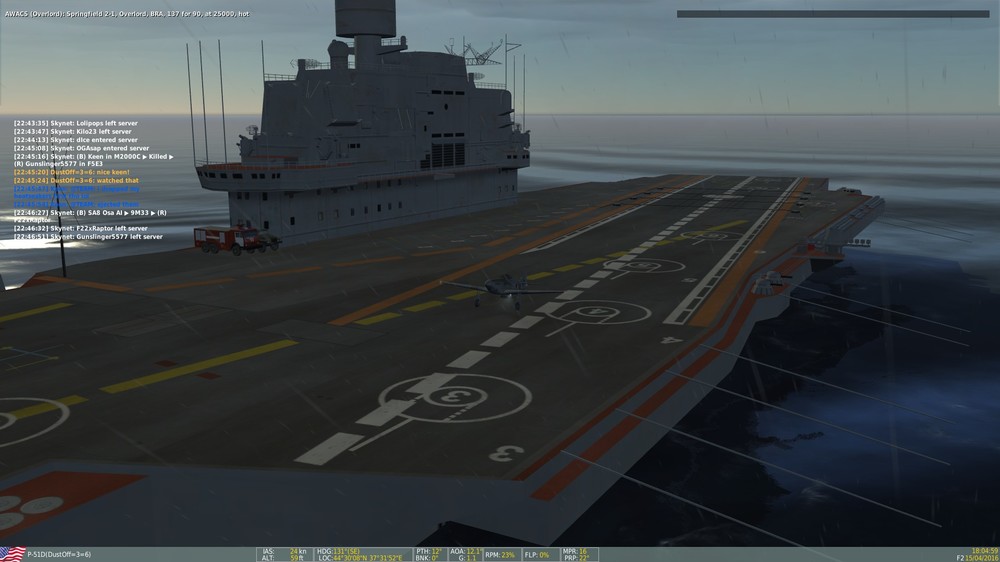 Tho i was not very sucessfull in the killing the 25Ts, i did manage a pair of fighters F15 (just for you mirk!) and Su33. Ship defense will continue until kill ratios improve! We fight for moskva! Also a fun mini helo party took place, cosmic stepping into his big boy pants with UH1!:thumbup: