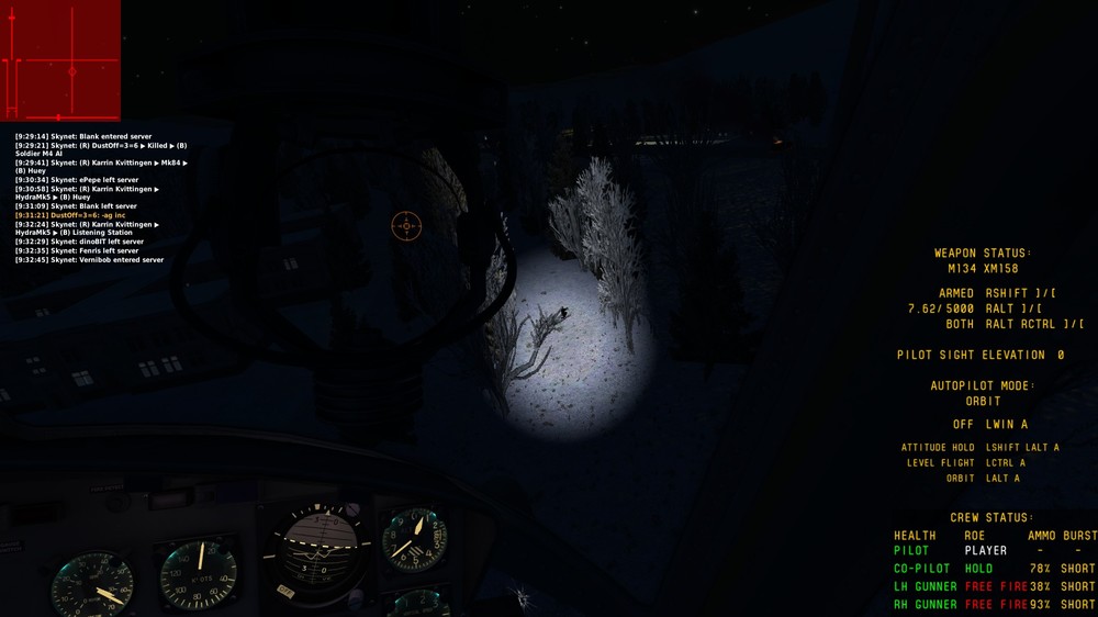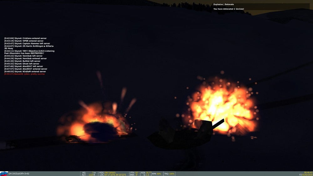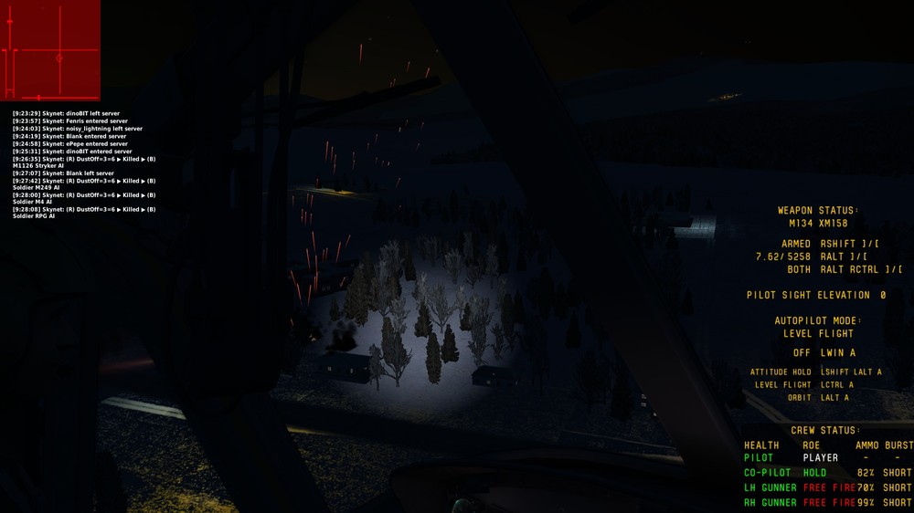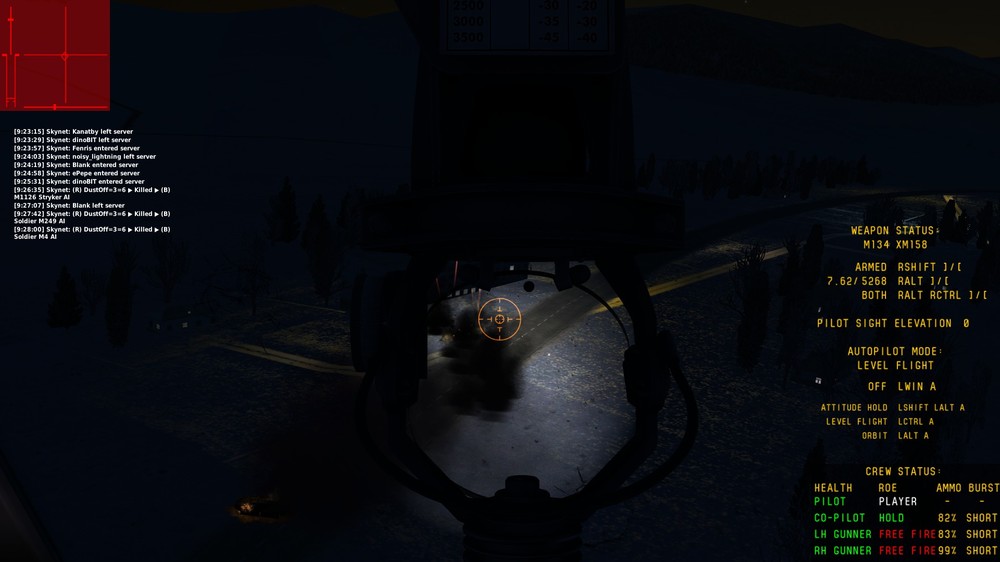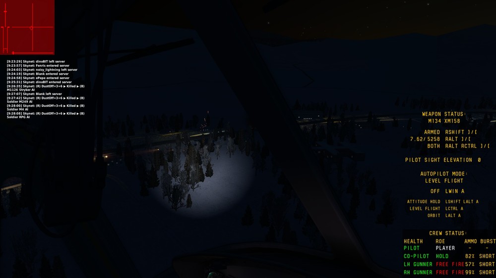 Awesome last day on OC. Love the night time in beginning, a whole new feeling. Took of from red farp in my huey went to the incursion searching with my spotlight. Using the search light was paramount in success, and this was the first time I got to use it in a combat scenario. WAY TO GO MIRKNIR!!! Identified all targets (after some time) and then was able to sneak up on convoy and take of more than half the vehicles with some explosive packs. :thumbup::thumbup::thumbup::thumbup: Be back next Tuesday for more.. Also p.s is there a way to set OAT? 15C seemed a little warm for the snow lol