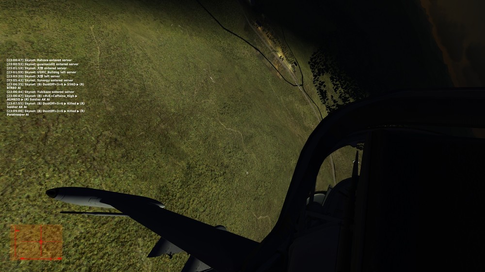 It's a bad pic I was late with the screenshot, it's actually bluefor INC at the first spawn location. A BTR and infantry occupy that village that I illuminated. Then the airfield is on the coast at Gelenz... Tuapse in real life! I can spot Mig so much better lol