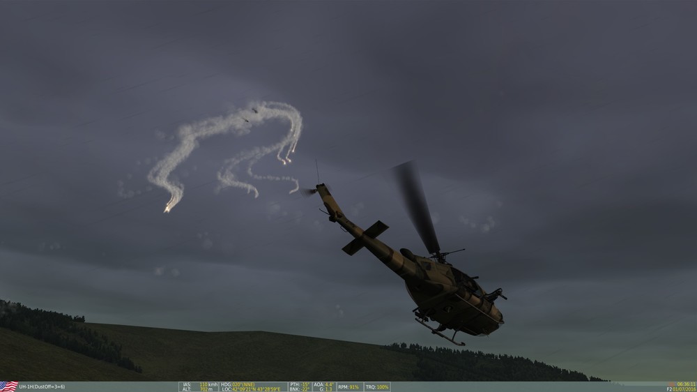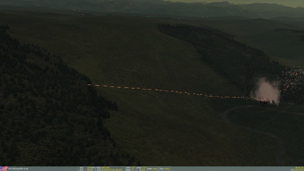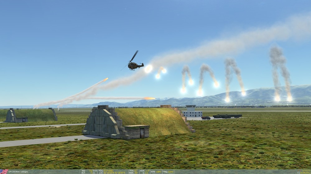 so some exciting and not so exciting news lol the RPGs don't really pose too much of a threat to the helo unless you land or hover slowly. Maybe there is a way to make them more aggressive in mission editor? but I had them on expert level outnumber my huey 20 to 1 and it was still easy pickins. I am not sure if there is away to assign them ROEs or not as I dont really ever use the editor, that could be a solution. However, the coolest and most fun thing ever is flying against manpads. I know you said something like you don't want respawnable GTA but if there is some way to make it work it would be exhilarating. I went against 6 manpads and was able to dodge some missles but eventually got taken out after I ran out of flares. I think even just 1 manpad at the hideout would be some great stuff, not sure if its possible tho. Here are some screens of the event...