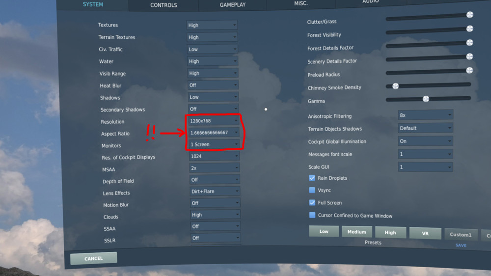 Combined Arms does have an amazing potential in VR, it only needs a proper rework to match the current level of DCS modules. Current VR implementation is bugged and scopes are broken. This mod attempts to fix most scopes and tweaks few other parameters. Calibration of the scopes is done on HP Reverb G2. I hope this fix works on other VR headsets as well. You will need to recenter your headset upon entry of the vehicle, and before shooting the target (for the best precision). A list of vehicles that have been calibrated and checked, but not limited to! RED: BMP-2, BMP-3, BTR-82, SA-19 Tunguska, T-72, T-80, T-90, ZSU-23, Grad, Smerch, Tor, Osa. BLUE: AAV-7, LAV-25, Bradley, Linebacker, Avenger, HMMWV TOW, Challenger, Merkava, Leopard, M1A2, Palading, MLRS, Stryker ATGM, Gepard. Download link: https://www.digitalcombatsimulator.com/ru/files/3322209/ CA_VR_HUD_FIX_v1.2.rar Installation: -If you have 4k monitor, set your display resolution to 2560x1440 or below!!!! -Set in-game resolution to 1280x768 -Aspect ratio then should be: 1.6666666666667 -Set "Monitors" to "1 Screen" -In VR tab set the "Pixel density" to 1, enable "Use DCS System Resolution" and "Crop to Rectangle" check boxes -Set in "OpenXR Toolkit" resolution to 70%. You can also try setting it higher, I had no issues in my tests with this parameter. However these are my settings. -Use Alt+Enter to enter the fullscreen mode when in a mission. Use OvGME for easy installation or install it manually by copying "Mods" folder to the root folder of the game. Use "Backup" folder within archive to revert the changes. P.S. Do not use scope zoom and rangefinder, they are not functional. Do not use them, they will mess up your aim! Keep it the range at 0000. Use VR zoom instead of scope zoom. If something doesn't work, try replicating my settings, presented in a screenshot below. UPDATE 1.1 -UI information is being properly displayed now -New scopes are callibrated -AA Radar is fixed UPDATE 1.2 - Further refinement to UI elemets! -Better UI colors -Better UI elements placement -Compass and tank hull/turret elements have being added -New scopes are being callibrated -AA Radar is refined to a next level Enjoy and feel free to experement and improve! ============================================================= Troubleshooting: If something doesn't work for you, try to copy over the following in-game settings.