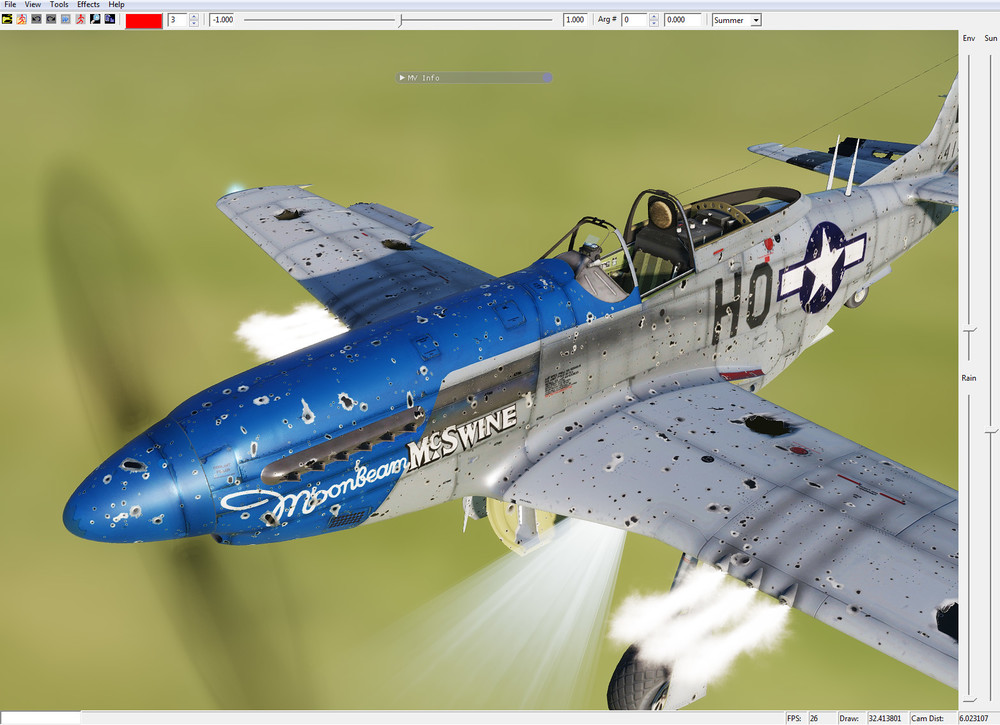 Just a note, there is bug caused by the damage textures for the P-51 being in the wrong .dds format. P51D_damage_main.dds and P51D_damage_main_2.dds have been saved as volume textures (this is normally used for damage_maps only). This results in bullet holes etc being black. I opened them and re-saved as a DXT1 2D textures and this fixes the issue.