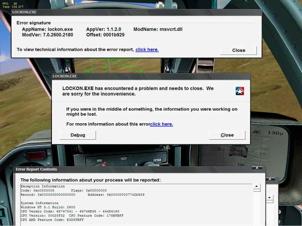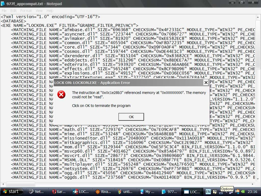 Доброго, всем, времени суток ! для начала моя конфа: AMD 4400 X2 (2.2GHz) ASUS A8N-SLI DELUXE (chipset nForce4) CORSAIR 2GB 1024x2 DDR400 8800 GTX EVGA 2x HDD WD RAPTOR 74GB 10,000rpm RAID-0 (raid onboard Silicon Image sil3114) Realtek ALC850 AC97onboard 7.1 установлена XP PRO SP2 Вот, собственно, данная трабла мучает меня, с первых дней знакомства, с ЛО модерн.эир.к. (англ) ! и недавно установил ЛО гор.скалы (рус) но проблема осталась – ЛО виснет или вылетает в винду….. постоянно !!! происходит это в самых разных, ситуациях, т.е. проблему нельзя привязать к каким-то повторяющимся действиям, просто вылетает во время самой миссии, чаще вылетает во время сложных, для мозговой деятельности компьютера, моментах ! При этом, в большинстве случаев ругается на память, т.е. вываливается на раб. стол и появляется сообщение, что мол error write или read, адреса памяти указывает. сейчас точно не помню, позже подниму скрин. или напишу точнее. в принципе можно было обвинить во всем память, и успокоится, но…. пробовал модерн.эир.к. (англ) еще на старом компе. т.е. вся конфигурация, включая память была другая, проблемы те же ! на новом компе, память, оба модуля были заменены новыми, но сбои продолжаются в обоих версиях !!!! пробовал запускать только с одним из модулей памяти, по очереди, результат - без изменений ! пробовал занижать частоты памяти и увеличивать тайминги, хотя память не разогнанная, - ничего ! кроме того, ЛО не единственное что запускается на компе, постоянно работаю в различных редакторах (граф, видео) загружающих память по самые помидорки, так же запускается куча разношерстных программ, игры, среди которых самые современные тяжеловесы, но все это работает без сучка, без задоринки ! ( ну почти без … :) ) ну что еще … винды переустанавливались, с тех пор, не раз, но изменений никаких ! при установки драйверов на видео все чистеца «драйвер клинером» ! драйверы всегда использовались самые последние, как на видео так на остальное железо ! видеокарта тоже менялась с 7900 на 8800, опять таки без изменений ! AMD Dual-Core Optimizer установлен ! во время запуска никаких антивирусных программ не используется ! температура проца и видюхи, во время игры остается в номинале ! в соседнем топике, несколько похожую проблему вылечили, отключением одного процессора, с мной этот фокус не прошел ! да и еще одна странная трабла, вряд ли связанна с первой: в ЛО гор.скалы при входе в меню «кампания», или при выборе файла для загрузки игра замирает, переставая, реагировать на нажатия кнопок, секунд на двадцать, после чего освобождается, но снова тормозит при выборе в списке компании или файла на загрузку. в других меню все нормально ! в ЛО модерн.эир.к. (англ) такой проблемы нет ! в общем помогите, кто сколько может …. играть хоцца !!! была бы другая игра - забил бы давно ! но на ЛО как-то не забивается ! Зарание спасибо всем откликнувшимся !!! пы.сы. пишу с работы, поэтому скрины и эрор логи выложу чуть позже !