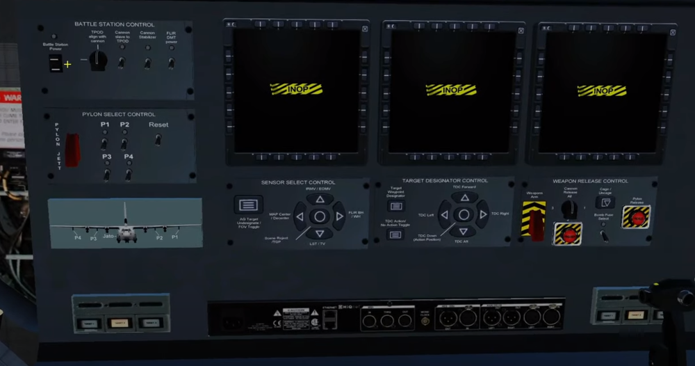 Hey guys, awsome mod! It's amazing how much effort went into this already and to see what is possible for DCS but misssing unless you have this mod. Cargo dropping, stuff you load in actualy showing up, paratroopers, etc. I do have a questions: I watched some vids on how to operate the hercules and i see a battlepanel on the loadmaster (3) station where you can arm the bombs. I do get the loadchart where i can flick threw some information. I however do not see the weapon armament controls, nor am i able to drop bombs or fire canons. I looked around on the forum, but couldnt find an answer. What am i missing? I am in VR, dont know if that could be a problem? I uploaded a picture of the panel im refering to -
