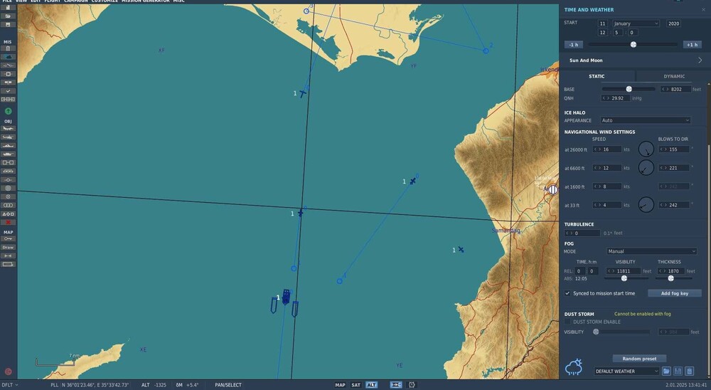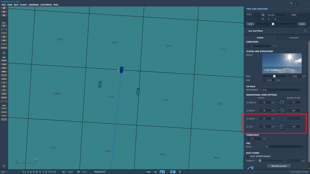 Before my other tests, I had made wind from 360 and the screen showed that same result which was correct. Then I changed it to different value as 298, wind bearing became nonsense. Crosswind speed is presented relative to BRC, I agree. I couldn't find any other way than turning ship 90 right-left try to catch 0-(-2) crosswind speed with along wind speed higher than ship's speed If I don't know winds direction in mission editor or whether it is changed during mission. If we know it's easy take reciprocal add 9 degree. But when we don't know or there is a dynamic changing weather, ship must show us, right? and it shows wrong value now that's I am trying to report. -