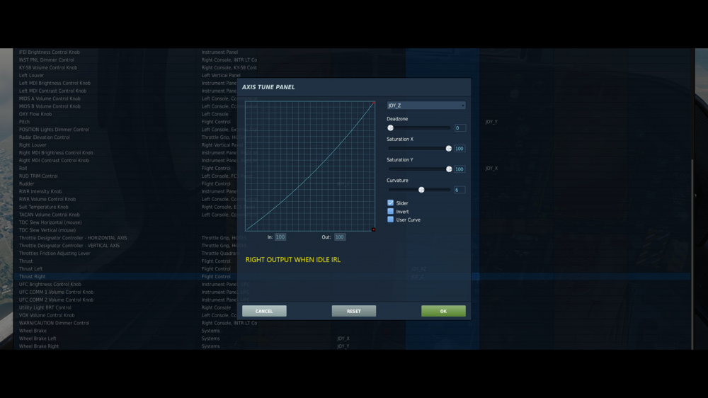 I have thrustmaster warthog. Made some adjustment for physical afterburner detent on warthog and noticed that when my throttle is IDLE physically, throttle in game never goes to idle. In axis tune it says you have 100% output for idle but controls indicator says nope you have 90%. I don't have this problem with other modules they work as expected.