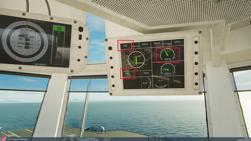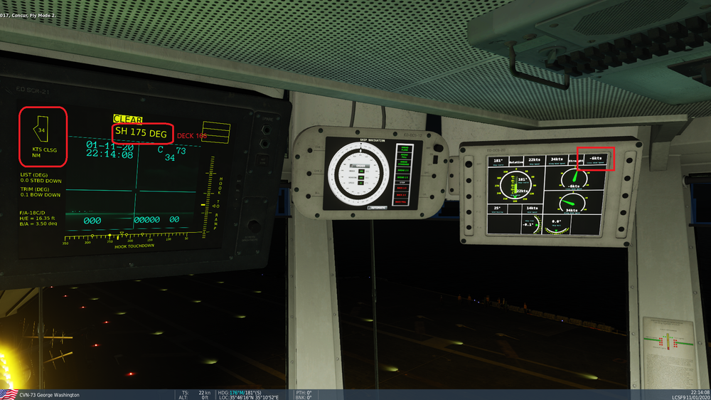 +9 degree is a constant value that should be added on the wind direction, in my case, wind from 298 true so 298+9=307 should be ship's true course to have zero crosswind on the deck. So, what is 242 for? it's nonsense .242+9=251 is not going to work either for zero crosswind. I made another track. Turned the ship to 307 true. crosswind became -2 kts. If I turned it to 298, it would be zero. that crosswind value is miscalculated also. It considers ship's true heading, ignores 9 degree angled deck. Or we should ignore that -2 kts crosswind and stay that course. idk tbh. Ship's course showed on the screen is true course btw. As you can see on the info bar at the bottom. my questions are "what's that wind course?" "how is it calculated on the screen?", "Is it bugged and miscalculated?" "how am I suppose to know what course I should turn the ship to have zero crosswind on landing area?" "Is that crosswind value calculated by ship's true course or angled deck true course?" "If by angled deck's course, isn't that also bugged and miscalculated?" I made the ship stationary to test that ARCTAN effect it still shows 242. airboss wind1 .trk -