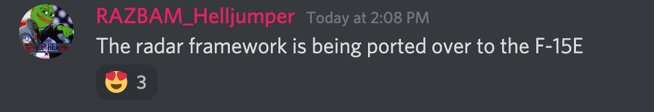 The Mirage 200C’s new radar framework is now (or very soon) being ported over to the F-15E which is very very promising as it is perhaps the best radar simulation in DCS atm (posted in the M2K discord channel)