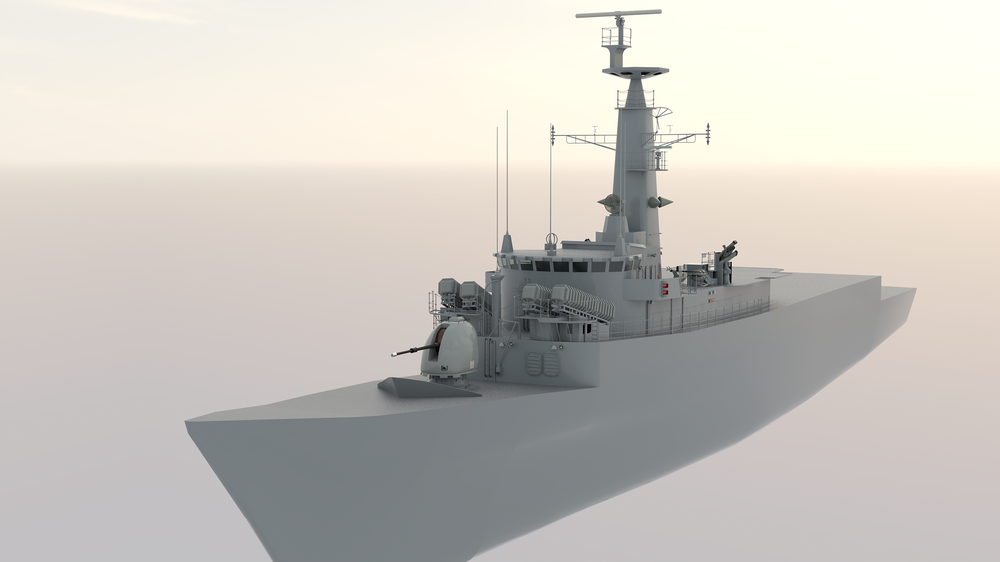 Thanks for the comments guys, I haven't seen any pictures of RAZBAM developing one to include in their Falklands pack although it would be strange to omit the Type 21s as they were pretty busy in the conflict. 7 of the 8 were deployed and two were sunk in San Carlos. They were (are) fine looking ships, the Pakistan Navy still has half of them sailing the seas. They were built down to a budget and could be said to be fragile but Sheffield and Coventry sunk taking pretty similar damage to Ardent and Antelope. The Falklands conflict changed ship design all over the world, less aluminium, more armour and more AA defences. A lot of the pre-conflict assumptions were proven wrong. I'm modelling Active as she was the first Royal Navy ship I went on during a local visit as a teenager. I'm modelling in Modo at present, it's pretty cool to be able to enter a VR view and "walk" around the deck from time to time!