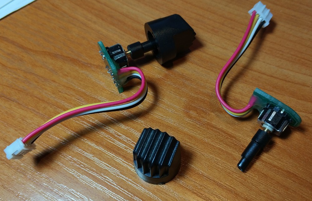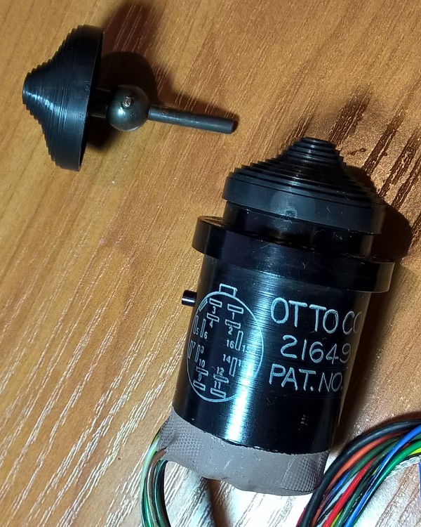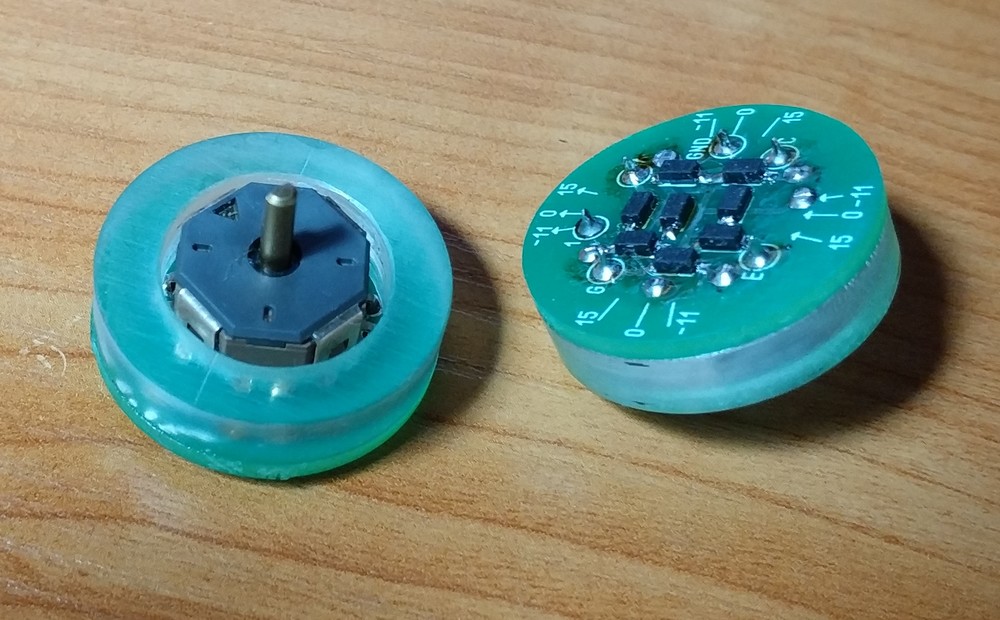 It's all that's left from the real OTTO US military surplus hat switches that I've found on eBay. Using them directly turned out to be impossible due to a very high and uneven force needed to move a hat (which is typical for the real-life switches). So after all I used just the aluminium bodies having them shortened to accomodate the PCB's with ALPS RKJXL hat switches. -