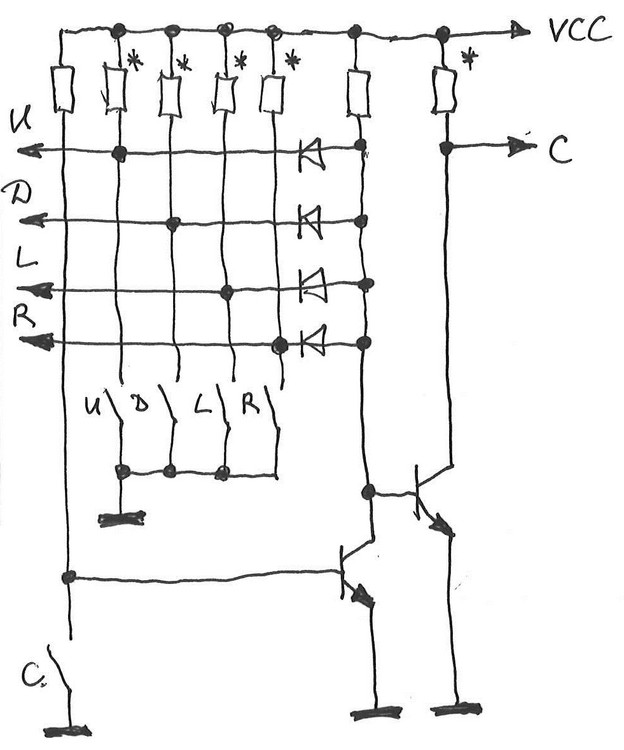 Well, five pull-up resistors with asteriks need to be present anyway (with any switch); but you are right, it's not for the faint-hearted :). Speaking seriously, I've made a layout in Sprint format to be used in Talon as a side hat (attached). As it also requires power and ground connection I've designed it as a pass-through board for the output cable from the shift register board in the grip. I've also done a similar layout to use RKJXM as a generic 5-way hat switch- I'll publish it here if anyone is interested. RKJXM.zip -