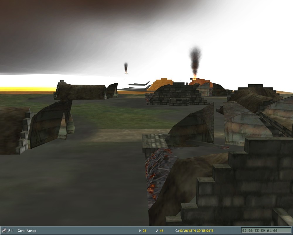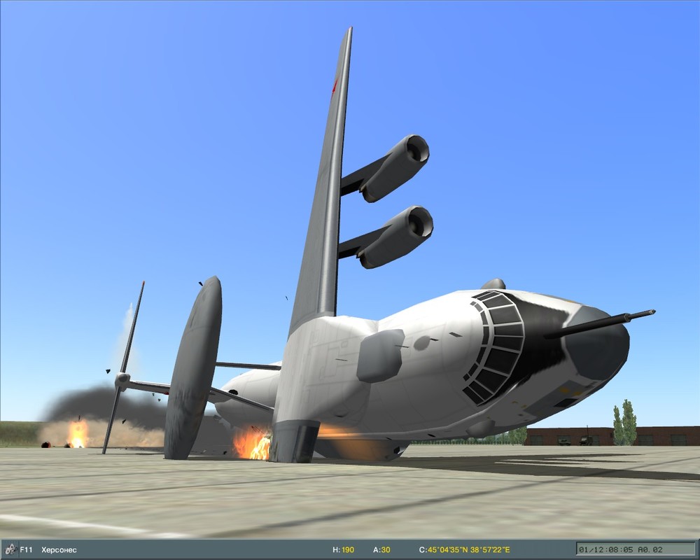 Да погодка была вчера не ахти. Посадки совершил без катастроф но с одной аварией:Заходил как обычно все вроде в норме; до 0,5 км его не видно; 0,3 км ни черта невидно 0,1 еле видно и тут я вижу что лечу левее впп на 50 м, ну я естественно правый крен под 30 и пытаюсь вый ти на полосу но не замечаю что высота малая и касаюсь правым крылом земли, а не бетонки, конечно оно у меня отлетает, но в ожидании, что самолету хана я вижу что он касается бетонки и едет по ней как в ни в чем не бывало.Чудеса прямо какие-то. Через 5 мин мой 29 отремонтировали но тут кончилась миссия так что вот так, было очень прикольно мне понравилось летать в сму. ФПС вроде не приседал мин был 22. А рд было почти не видно даже при вкл далн света ехал почти вслепую