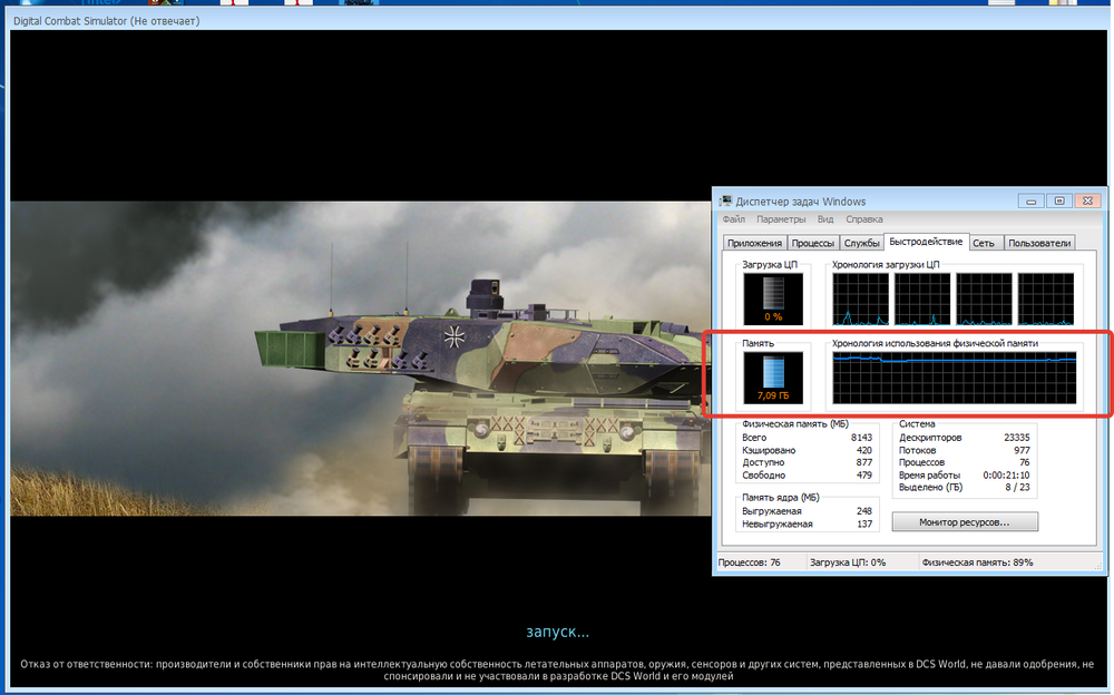 после запуска главного окна все работает нормально и проц... не особо загружен выбираю сетевую игру идет загрузка оператива почти на все 8G загружена и потом происходит вылет на главное окно но сервер судя по диспетчеру задач уже запущен и так каждый раз. Может кто сталкивался с такой ерундой подскажите что не так. хотя у меня железо не самое ДРЕМУЧЕЕ.