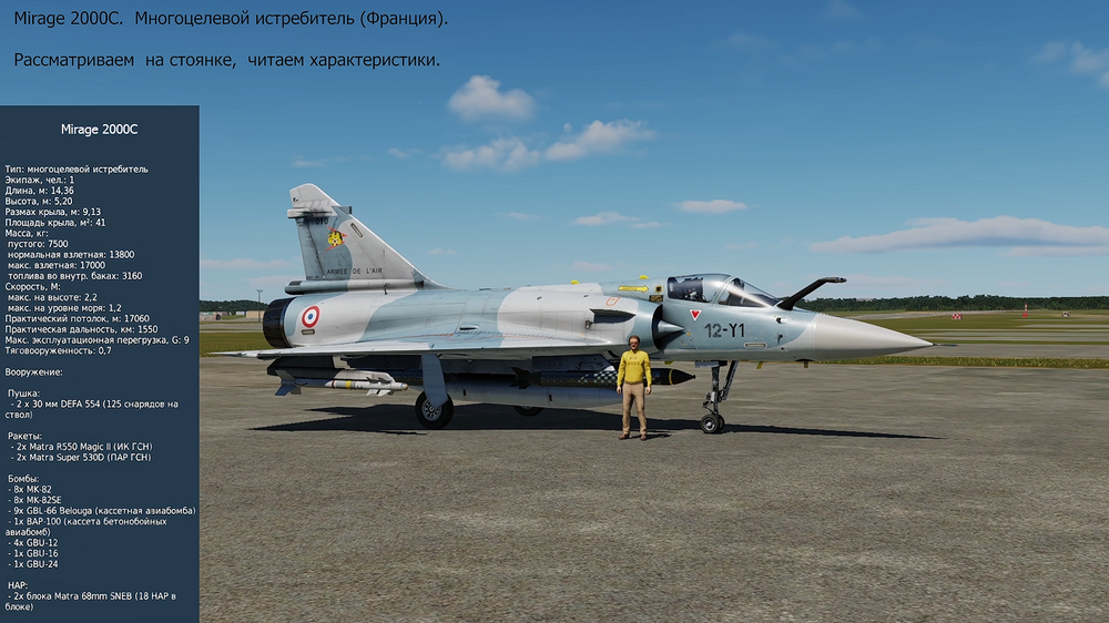 Mirage 2000C. Многоцелевой истребитель (Франция). Рассматриваем на стоянке, читаем характеристики. Смотреть видео.