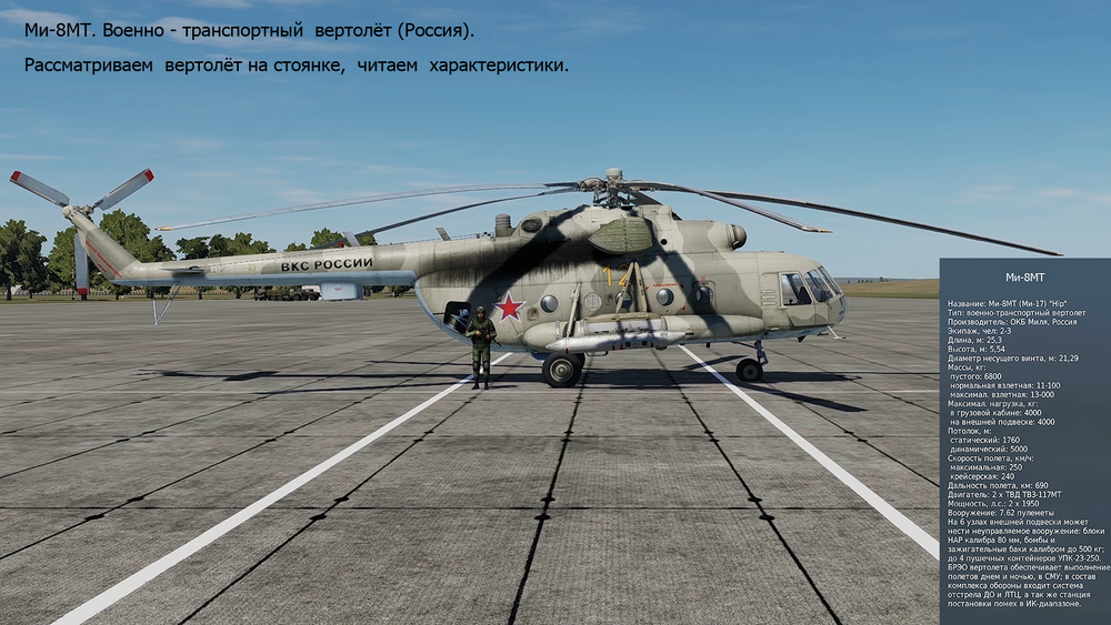 Ми-8МТ. Военно - транспортный вертолёт (Россия). Рассматриваем вертолёт на стоянке, читаем характеристики. Смотреть видео.