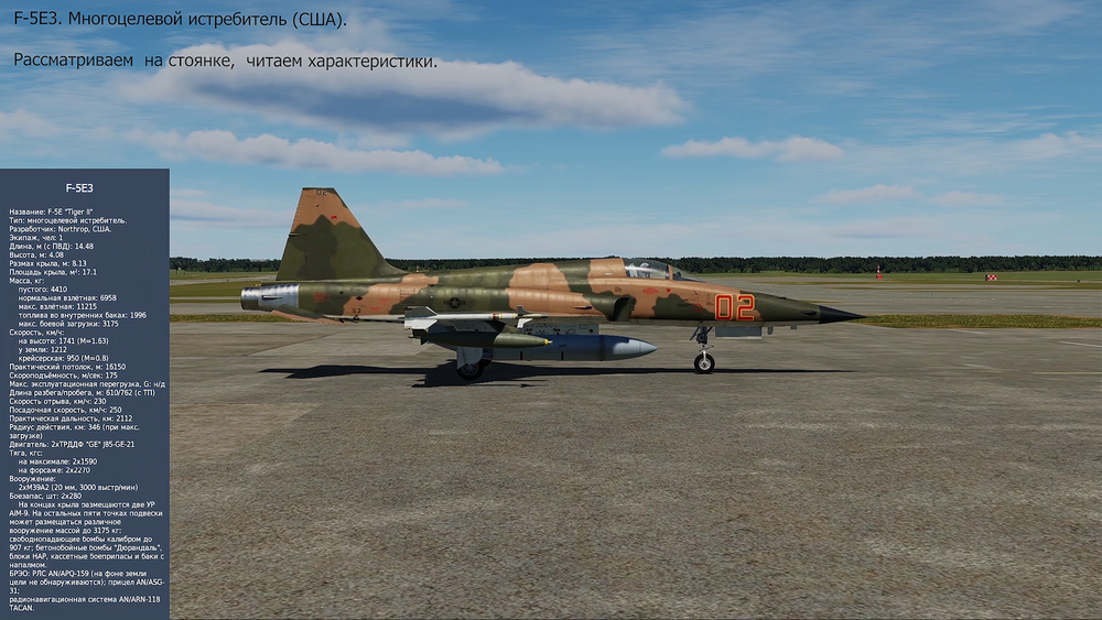 F-5 E3 Многоцелевой истребитель (США). Рассматриваем на стоянке. Читаем характеристики. Смотреть видео.