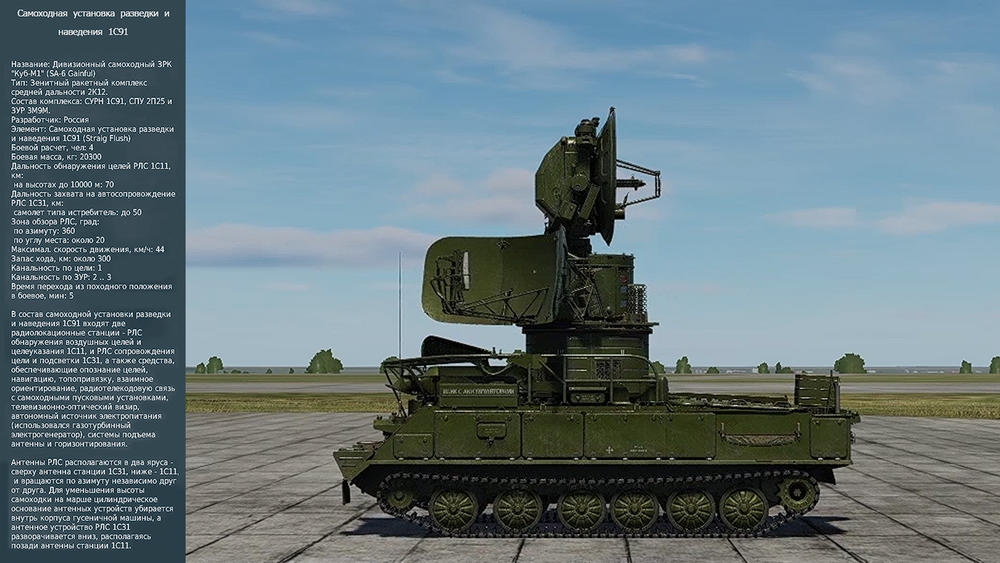 Самоходная установка разведки и наведения 1С91 ЗРК "КУБ" (СССР). Рассматриваем, читаем характеристики. Смотреть видео.