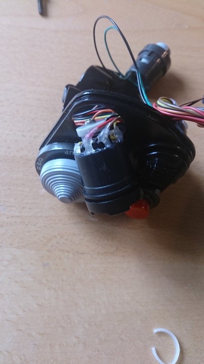 As I needed to open my TM Warthog stick today to replace the CMS switch, I decided to have a look at how Thrustmaster handles the coolie hats on the stick. I found that the TMS, DMS and Chinahat all share the same type of switch: They are some kind of bucket, pushed through from the front and hold in place by plastic clips. The caps are hold in place by screws from the backside and a spring, that controls the resistance of the switch. While the caps are interchangeable, the chinahat's ring with Nose up/down written on it is part of the bucket. So if you want to switch that as well, you would have to take out both complete coolie hats, which involves messing with the cables. The cables are luckily plugged in on a circuit board, so no soldering required. So in conclusion: If Thrustmaster handles the coolie hats on the F-18 stick similar to the ones on the Warthog, you probably will be able to interchange them. Just not as easily as swapping the caps.