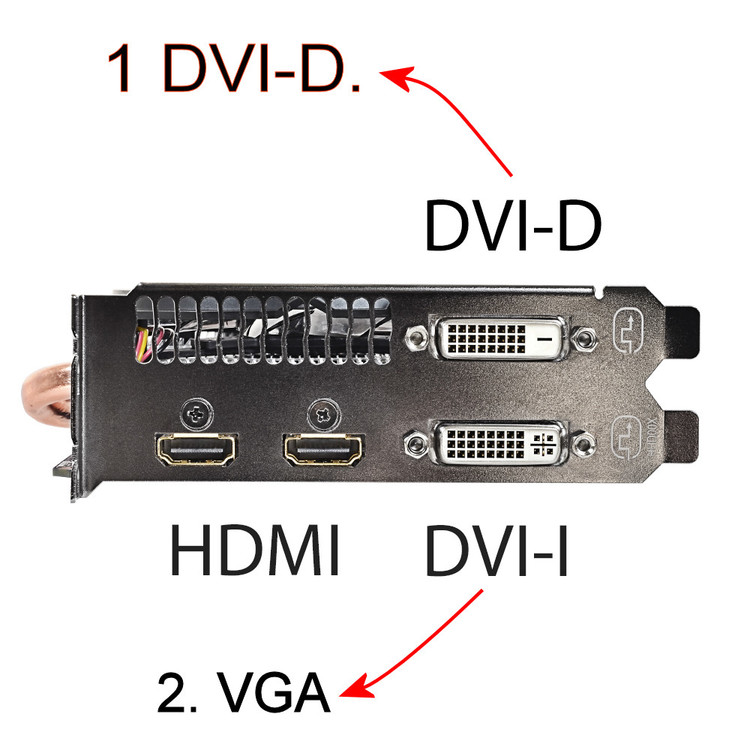 Helios want your monitor to be 1 on the left and 2 on the right, this sometimes is inconvenient depending on monitor size, shape, etc. If you have a problem with how Windows assigns numbers to your monitors you may be able trick Windows by doing the following. Windows seems to assign the number 1 monitor to the fastest latest technology. HDMI > DVI-D > DVI-I > VGA I was able to use an adapter to connect my DVI-I output to a VGA in, on my old monitor, now it is number 2. Prior to this the old monitor was identified as 1 because the input cable was HDMI. My newer monitor, connects directly using DVI-D. So it would seem the cable determines monitor numbering, where cable types differ. A DVI-D connector on a graphics card sends out a digital signal only, while a DVI-I connector, which carries both an analog and digital signal, can send out a digital signal (for digital displays such as flat panel LCD monitors) as well as analog signal (for older displays such as a CRT monitor) using a DVI to VGA adaptor shown below. The DVI-I connector contains more pins than the DVI-D connector. The extra pins on a DVI-I connector carry the analog signal which the DVI-D connector does not have. DVI-D and DVI-I connections shown below. There is also a bios video priority setting , which may or may not be helpful.