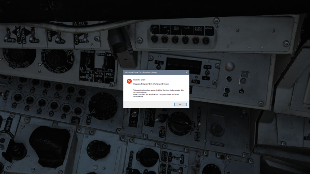 Left- or right clicking the "RADAR/EL maintenance test switch" results in a C++ Runtime error and application close. Running openbeta 2.5.5.41371