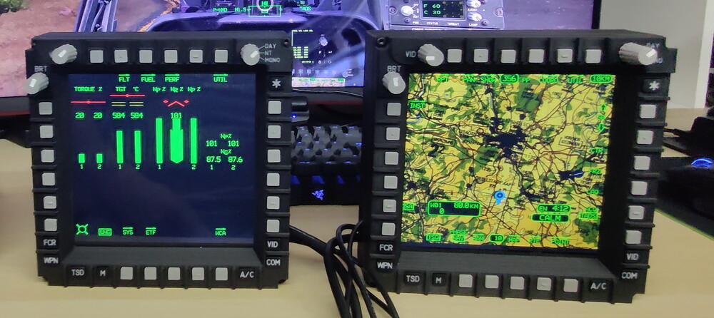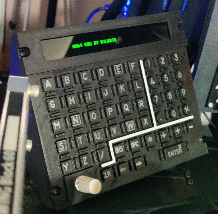 Here is my KDU (Keyboard Display Unit) for the DCS AH-64D Apache. The project includes files for 3D printing, laser engraving of the button labels, and, of course, the Arduino code. You can switch the display source from Pilot to CP/Gunner by pressing a button. This button is wired to PIN 7. I integrated this function into the push-button of the rotary encoder for the KU Scratchpad Brightness Knob. I engraved the labels with a laser, but I've added another version of the buttons where the labels are raised so they can be printed directly with a 3D printer. I used an Arduino UNO and an SSD1322 OLED display with an SPI interface. now available on GitHub! https://github.com/MilKris666