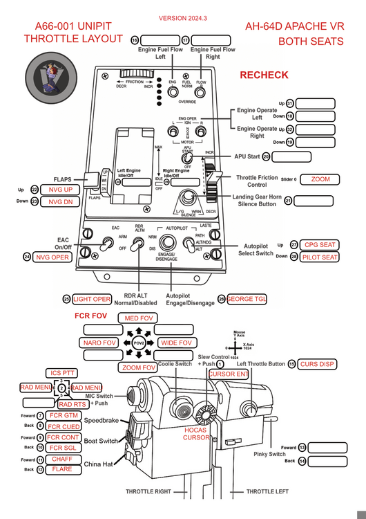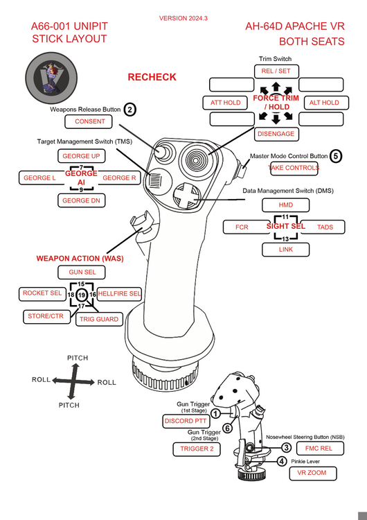 Bit of a necro I guess but here is what I'm using with a Warthog, game controller and an old cougar stick while I build my TEDAC. These are not intended for generic use, as they're very specific for me. I like to have common things like radios, vr zoom etc on the same button in every aircraft (AH64, UH1, F/A18 etc) to minimise finger fires.
