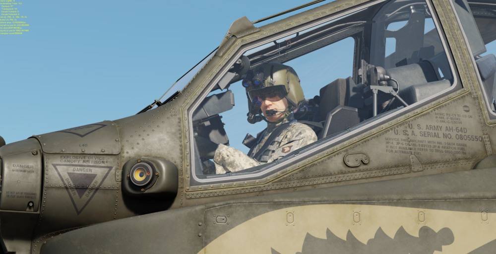 more issues found: The visor up/down animation is broken, the visor doesn't move but the pilot's arm and hand do movement. The position of the hand and arm in the animation is separated from the visor in the HGU-68P version of the helmet without the JHCMS, with the JHCMS it is correct. In the DCS menu you can request by radio to the ground crew to change the device between the helmet with the night vision goggles (HGU-68P with banana adapter) and the version with the JHCMS visor but, you can NOT request to remove both (to keep the HGU-68P version simple). I hope it helps Greetings -