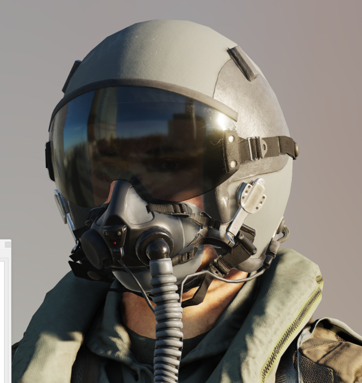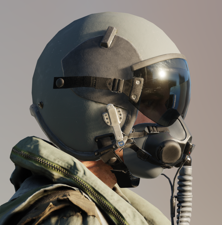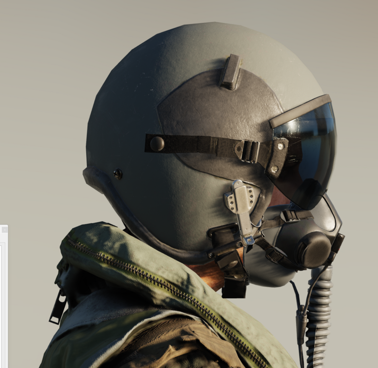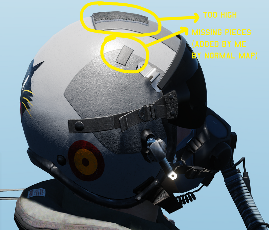 @BIGNEWY First of all thank ED for his effort to improve the 3D model of the F/A-18C Hornet pilot in the last patch, it is a fantastic model, much better than the previous one, but still needs work, I will detail some things I have seen as skin maker in case it helps to continue improving it: The 3D mesh of the helmet deforms any texture added on the sides of the helmet. The velcro patch on the top of the helmet has too much height and is not realistic. The visor is not supported on the mbu-20 oxygen mask as it really is (see attached images) giving an unrealistic appearance. These pieces so characteristic of these helmets that protect the visor from scratches against the helmet are missing. I hope it serves as help to continue improving the helmet model. greetings -