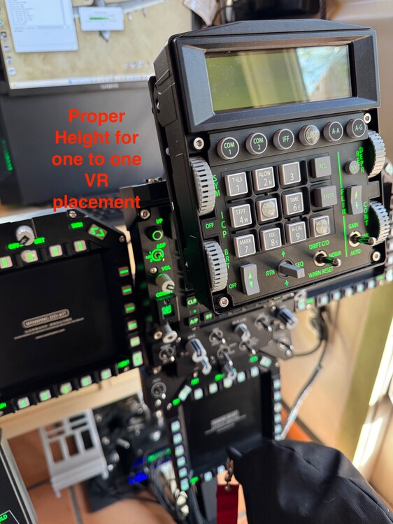 For those of you that strive to get your physical devices in the same physical space and aligned properly between in game VR visualization and physical space - this bracket might be right for you. The default WinWing Bracket that mounts the ICP in front of the F18 UFC/HUD places it too low to be in the "proper" space. I worked with Dimitar to develop this bracket that solves the issue! When the ICP is not in use, it folds completely out of the way!