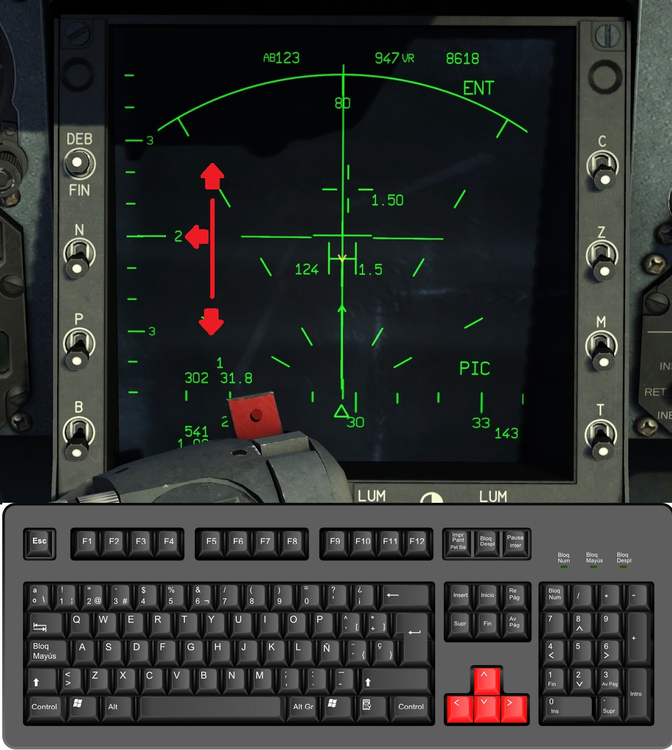 Buenas tardes, estoy teniendo alguna dificultad para localizar una función del radar del Mirage 2000C para trasladarlas al teclado. He editado una foto para explicarlo lo mejor posible. La función viene por defecto asignada a las teclas direccionales "arriba y abajo" del teclado y lo que hace es, en la parte izquierda del panel, desplazar de arriba hacia abajo una especie de barra, que no se si es de rango de distancia o altura de escaneo. La cuestión es que he asignado otras funciones a esas teclas perdiendo la función por defecto y ahora no encuentro la forma de localizar la función inicial. Necesito localizar esa función para reasignarla, porque no he logrado encontrarla en ningún botón de los paneles del cockpit. Gracias.