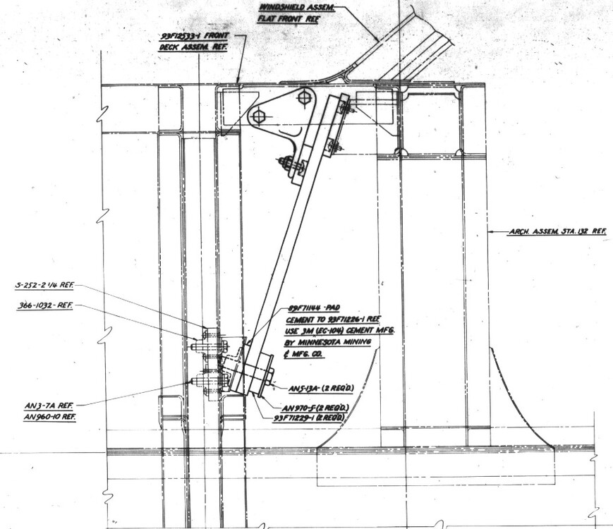 The P-47D-30 (INCORRECT): The rear armor (XArmor01) - The shape is generally correct, however for some reason left and right outside edges slightly fold forwards. Not entirely sure why, as it's not reflected in schematics for the late 47D. As you can see in the photo above, it is given again, the same value of 22mm. However, the armor should be split into two separate pieces like was done for the P-51D. While the head armor and body armor are welded together, they are of different thickness. The head armor should be 3/8" thick, or 9.5mm. The larger, body portion of the armor however is 1/4" thick, or 6.35mm. [FIXED: DEC 16, 2022]The instrument panel (XArmor00) - Interesting that DCS identifies this as armor. If you look at the second photo in this post, you'll see that "XArmor00" (the instrument panel's ID) is set to have a thickness of 22mm. However, in truth the instrument panel was only 1/8" thick, or 3.2mm. This means that DCS set the instrument panel to be almost 7x thicker than it was intended. The P-47D-30 (MISSING): The bullet-resistant windshield - It's evident in the 3D model that the glass is of the protection type at least, but it also shows in the drawings. Yet in the damage model, it is not there. You can even see it (or rather, NOT see it) absent in the photo from the Modelviewer, at the top of this post. The glass is of the same thickness as that of the P-51D's, at 1.5", or 38mm. Here you have the bullet resistant glass for our bubbletop P-47: The frontal armor - This is a smaller cut of armor, that was mounted just forwards of the windshield, at a slope, just inside the upper cowling, intending to give further protection below the armored glass's reach. It was 3/8" thick, or 9.5mm. On early P-47Ds, without the bubble canopy, this was at a significant slope, somewhat parallel to the armored glass. However with the introduction of the bubble, it's slope was reduced and it was shortened in height. In summary for the P-47: -[FIXED: DEC 16, 2022]Change XArmor00 from 0.022 to 0.0032 -Break up XArmor01 into XArmor01 and XArmor02 (head armor) and give XArmor01 a value of 0.00635 and XArmor02 (head armor) a value of 0.0095 -Add "Reinforced Glass" windscreen, give a skin value of 0.038 -Add frontal armor. Material "Steel", and a skin value of 0.0095