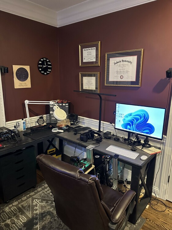 I came from the Reverb G2 headset. I recently purchased my Aero, and I really love the way things look. I am having only one issue that I need to fix. I have been doing all of my initial testing on simple single player missions and I maintain a constant 90 fps. I am using the Native openXR and I have a 12700K cpu and 4090 gpu. Every 30 to 60 seconds it seems that the screen freezes for about 1-2 seconds and then rapidly moves to catch up to where I am looking. I can't decide if this is some stutter issue or a tracking issue. I am including a photo of my office to show where I mounted the base stations. One base station is directly above my monitor and the other is 90 degrees to my left. Does anyone see a problem with the mount locations of the base stations? How can I determine if this is a tracking issue or some other stutter issue?