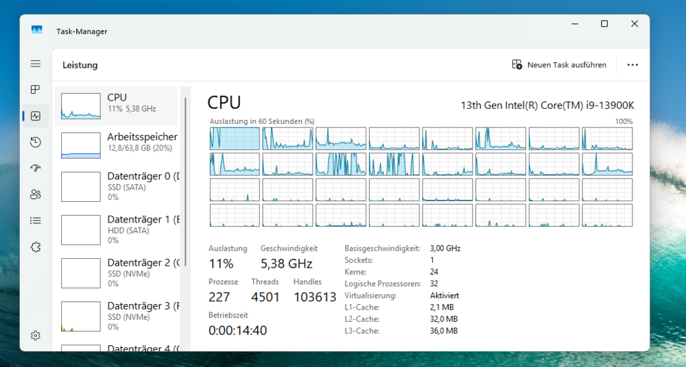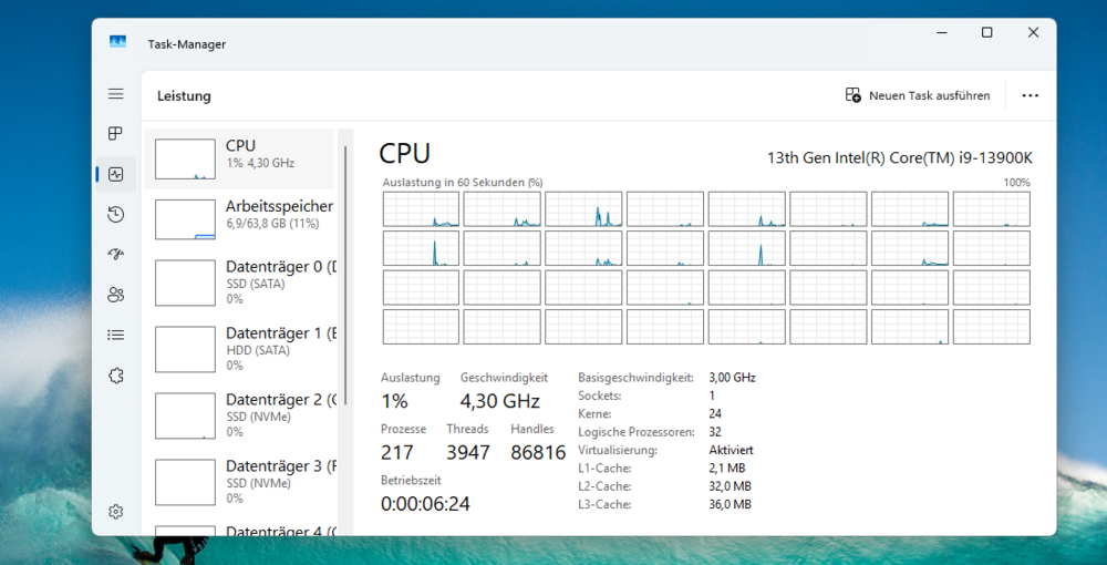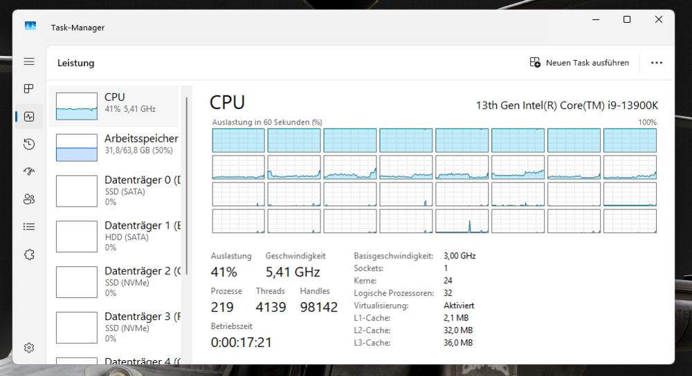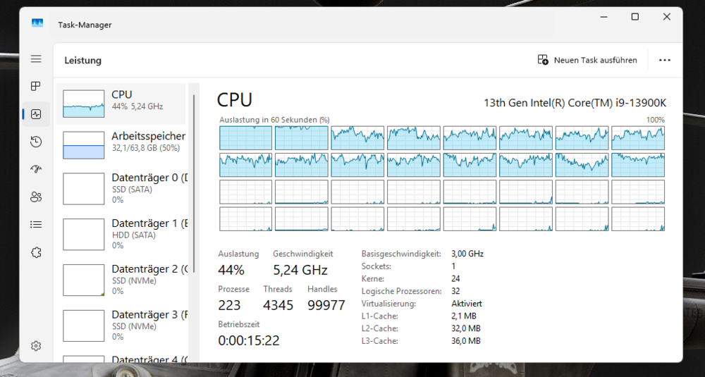 What feels a bit strange for me is: The task manager shows me 32 cores but my processor has just 24 cores and 32 threats.